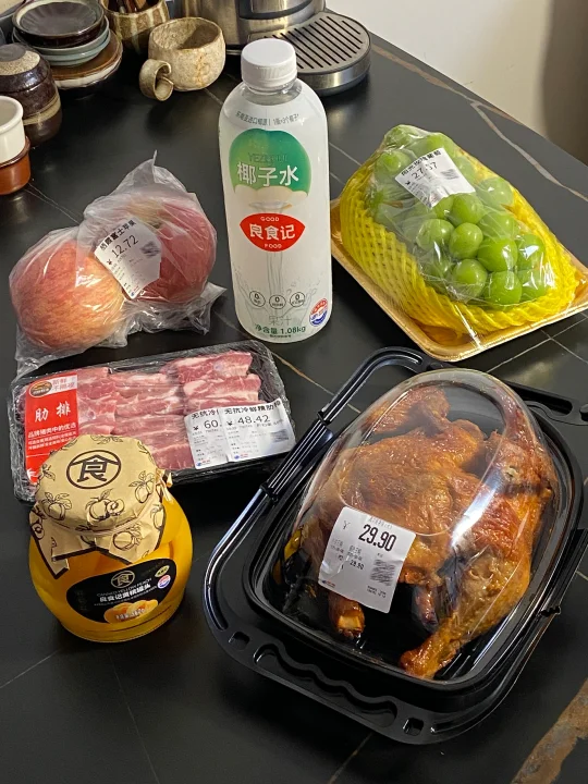调改店的风吹到了家门口!听说升级后的物美特好逛,刚好离得近去采购一圈,一进店确实惊讶到了,整个店超级大,食品有各个分类,每一个品类的东西排列的整齐种类又多,真不错,一进门就是熟食区和烘培区,熟食区转了两大圈,买了香喷喷的奥尔良烤鸡和刚出炉的烤饼,烤鸡是现给装的,刚烤出来的特香,还有很多熟食卤味,种类还挺丰富的,又到旁边的鲜肉区买了两盒排骨回家炖着吃!