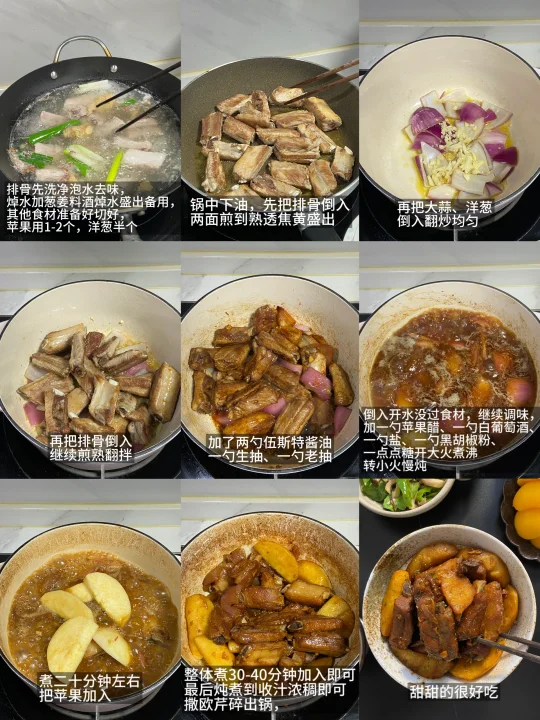 排骨600g|苹果|洋葱|大蒜|欧芹碎|伍斯特酱油|苹果醋|白葡萄酒
