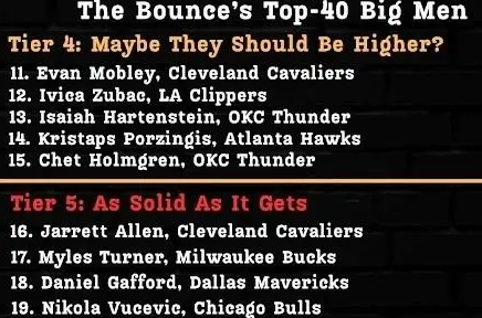 TA记者ZachHarper排NBA排名前40的大个子。其中约基奇独一档排第一