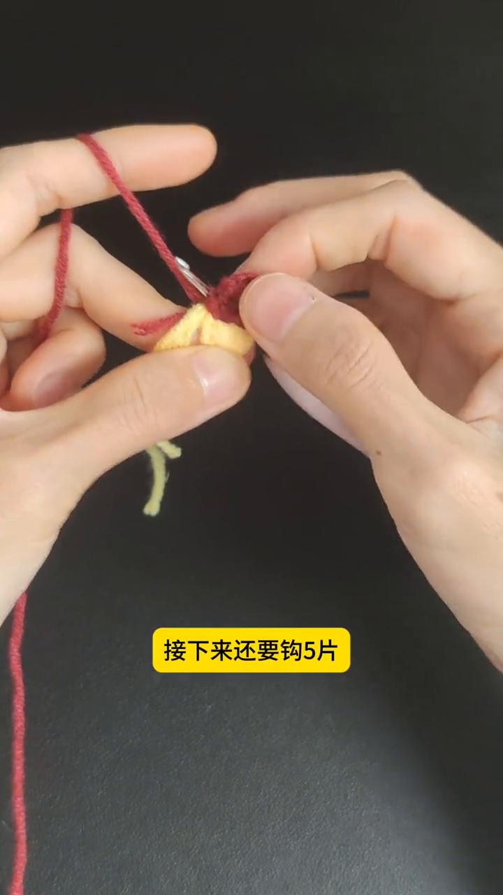 手把手教你钩织一朵小花儿。 ·环形起针,绕两圈,一个锁针,圈内钩6个短针,剩下的自行完成。 ·做完6个短针之后,拉大线圈,翻到背面,拉动短线,再拉动收缩的线圈,最后拉动短线回到正面。 ·把钩针插入这里,换线钩织第二圈,把这根线拉出来,断掉。 ·现在与第一针引拔,同时把线头藏起来,拉紧引拔针。 ·现在开始钩织第二圈,第二圈三个锁针,同针目一个长长针,同时把线头藏起来,三个锁针,同针目引拔,第一个花瓣完成了。 ·接下来还要钩5片,现在钩织第二组,下针目引拔,同时把线头藏起来,三个锁针,同针目一个长长针,三个锁针,同针目引拔,第二组就完成啦。 ·按照同样的方法,还要钩3组,自行完成。 ·最后一组同针目引拔完后,与第一针也引拔一次,断线,把线头藏到背后,就可以断线了。 一朵小花就完成啦。