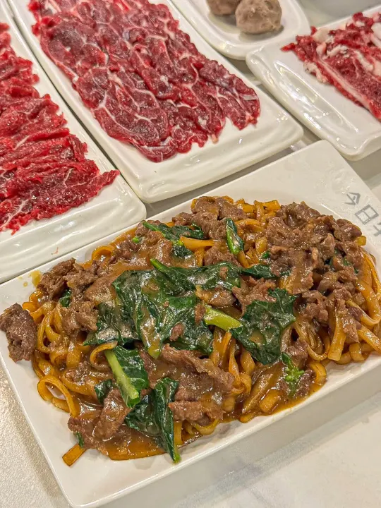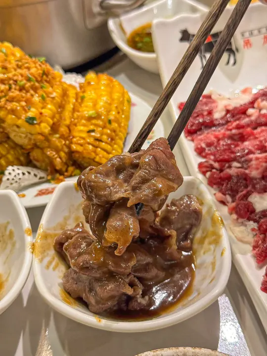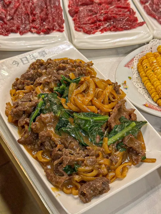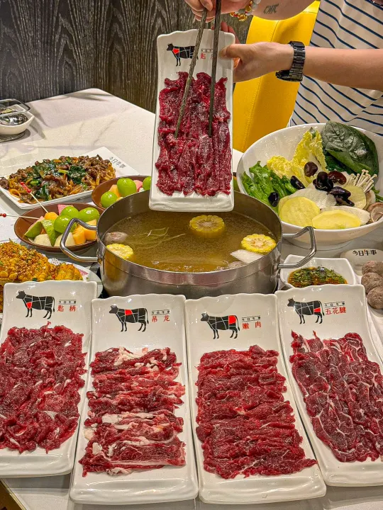 进门就看到透明橱窗里师傅现切牛肉,刀工jue了!每片都带着漂亮的纹理,新鲜得像刚从牛身上跳下来似的~