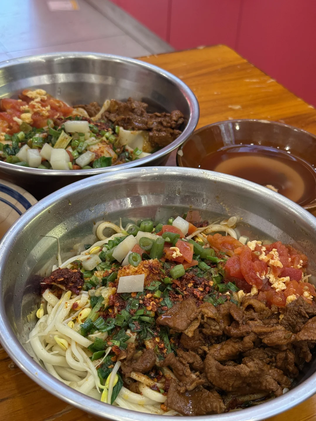 在太原!也能吃到这么喷香的油泼面! 刘小武的米皮店!这个油泼面深得我心! 用不锈钢盆装的面,分量超足了… 伙伴点了拉条子,面更爽滑劲道! 我点了油泼面,宽宽的扯面更有滋味~~ · 店里解暑的绿豆汤是自助的! 放上红枣干,美滋滋! 店里还有米皮、肉夹馍…… 老陕的含量很足! ·