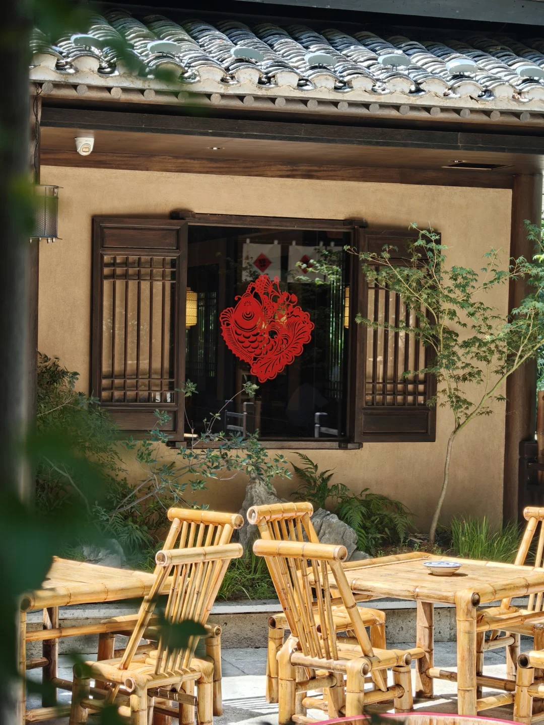 还没进餐厅,先被院子吸引,青瓦白墙,古色古香,还有小桥 溪水,还没开吃,心情就已经美美的啦🥰