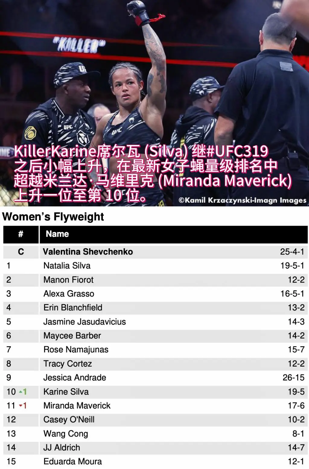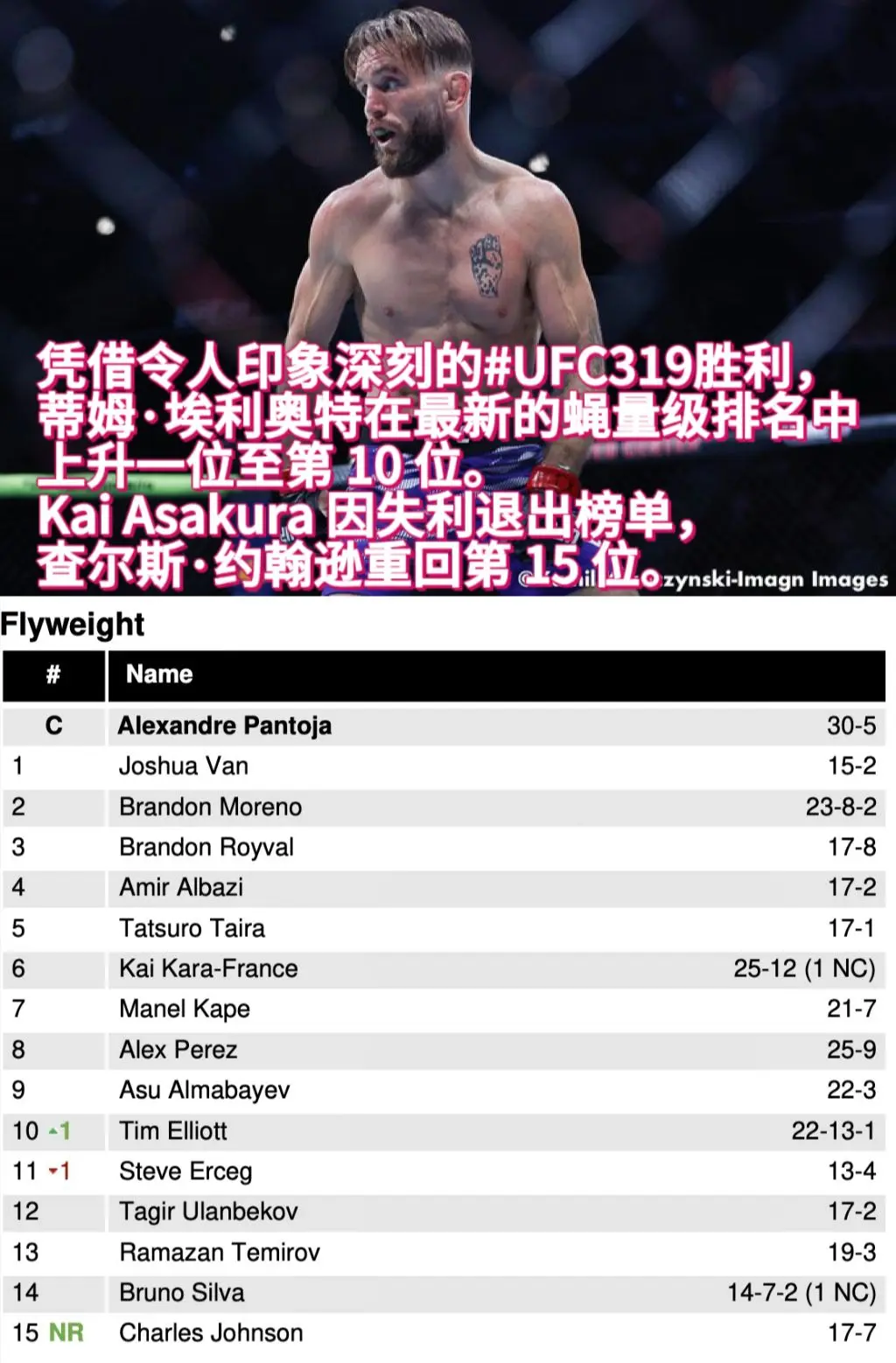 UFC最新排名。UFC319 后最新排名更新!