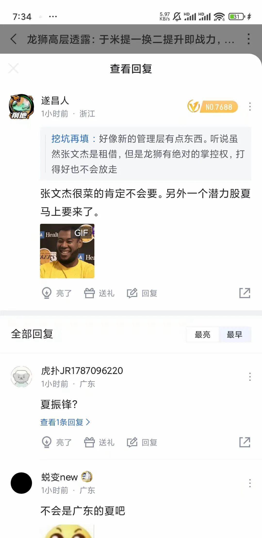徐昕换焦泊乔?如果过几天广东宏远官宣跟广州龙狮这笔交易,你们不要感到惊讶。因为今天传出广东宏远二队的潜力新星夏振峰被交易到广州龙狮。夏振峰作为二队球员不可能是交易的主角,只是交易附加球员。 目前广东宏远最有可能被交易的球员是徐昕,那么徐昕换广州龙狮的谁呢?只有崔永熙和焦泊乔,所以很有可能交易是这样的,广东宏远徐昕+夏振峰交换广州龙狮崔永熙,或者徐昕+夏振峰交换焦泊乔。无论是崔永熙或者焦泊乔都是宏远需要的球员,同时龙狮缺内线球员,徐昕正好满足他们的要求。至于是崔永熙还是焦泊乔呢?我们等待官宣吧。 #广东宏远# #广州龙狮# #崔永熙# #焦泊乔# #夏振锋#