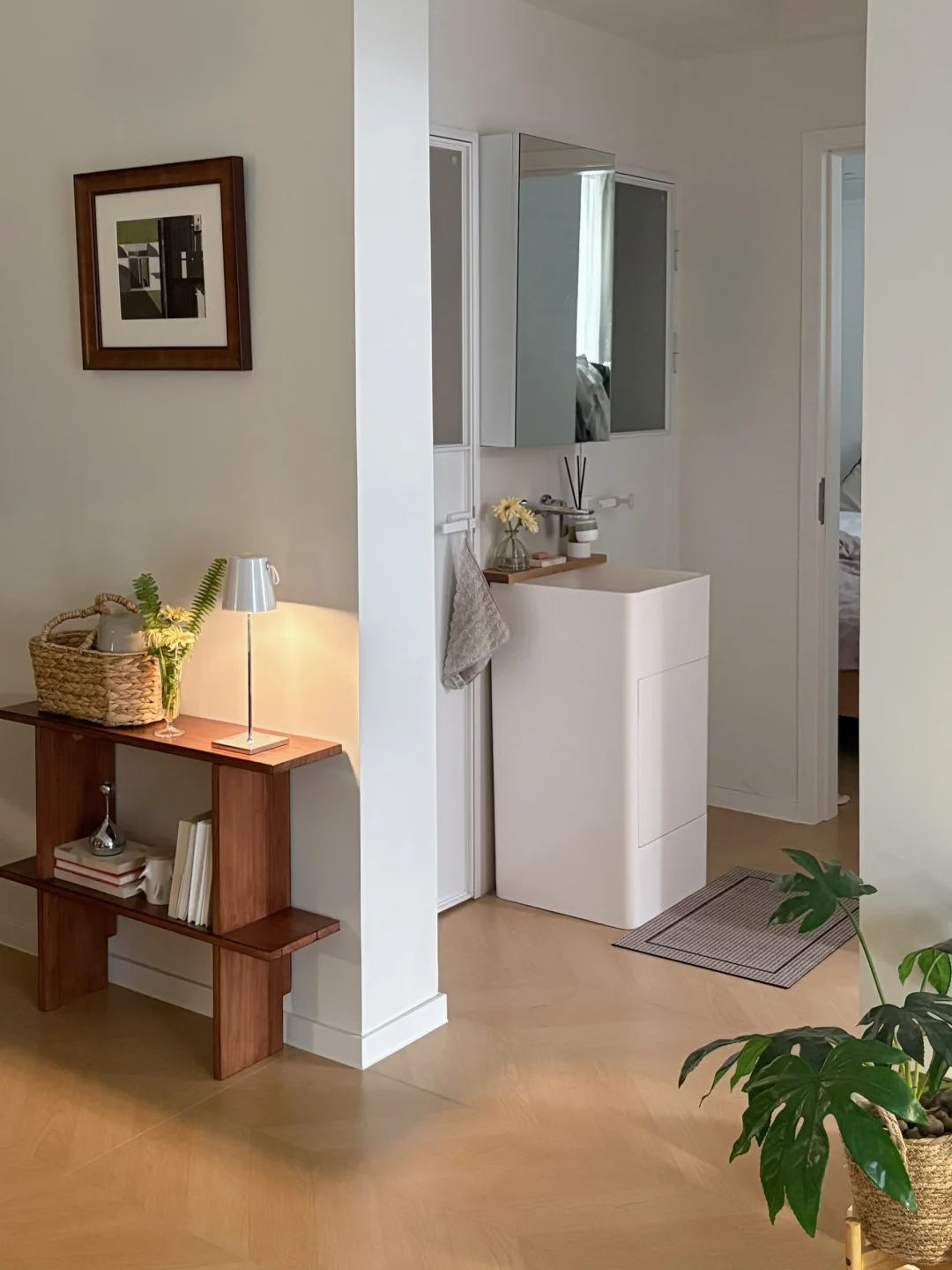 是的,又又又手搓置物架了🛠️这次是边柜置物架 原计划是在卧室放一组成品的置物书架 但成品的深度太宽,会影响过道空间 干脆折算比例,算好尺寸定板材自己Diy 做好后发现放在餐厅也很貌美 ▪️费用方面: 松木板140➕家里剩的木器漆➕上次DIY剩的角码 全部用新材料,也不到200💰 尺寸和具体教程等过几天出视频就会更新