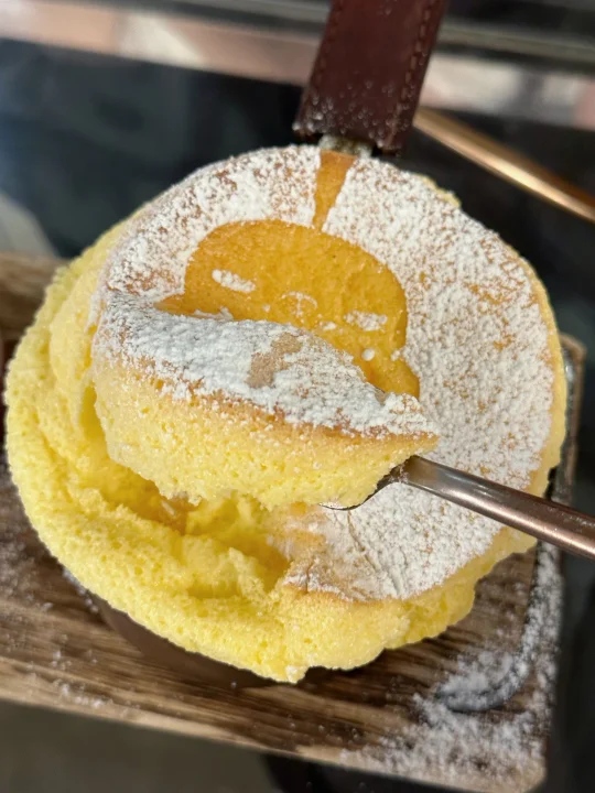 🍰一口沦陷!好吃到跺jiojio 🥞舒芙蕾现点现做,等待的时间有点小漫长,但当它端上桌的那一刻,你会觉得一切等待都是值得的!刚出炉的舒芙蕾,很蓬松太可爱了 💖入口浓郁的蛋奶香气,太太太好吃了!!!口感更是一绝,绵密、轻盈、柔软,入口即化,不会过于甜腻 🍓口味很多,我们点的经典原味舒芙蕾和覆盆子舒芙蕾 两个都很好吃,原味的里面流心的感觉入口即化,口感特别好