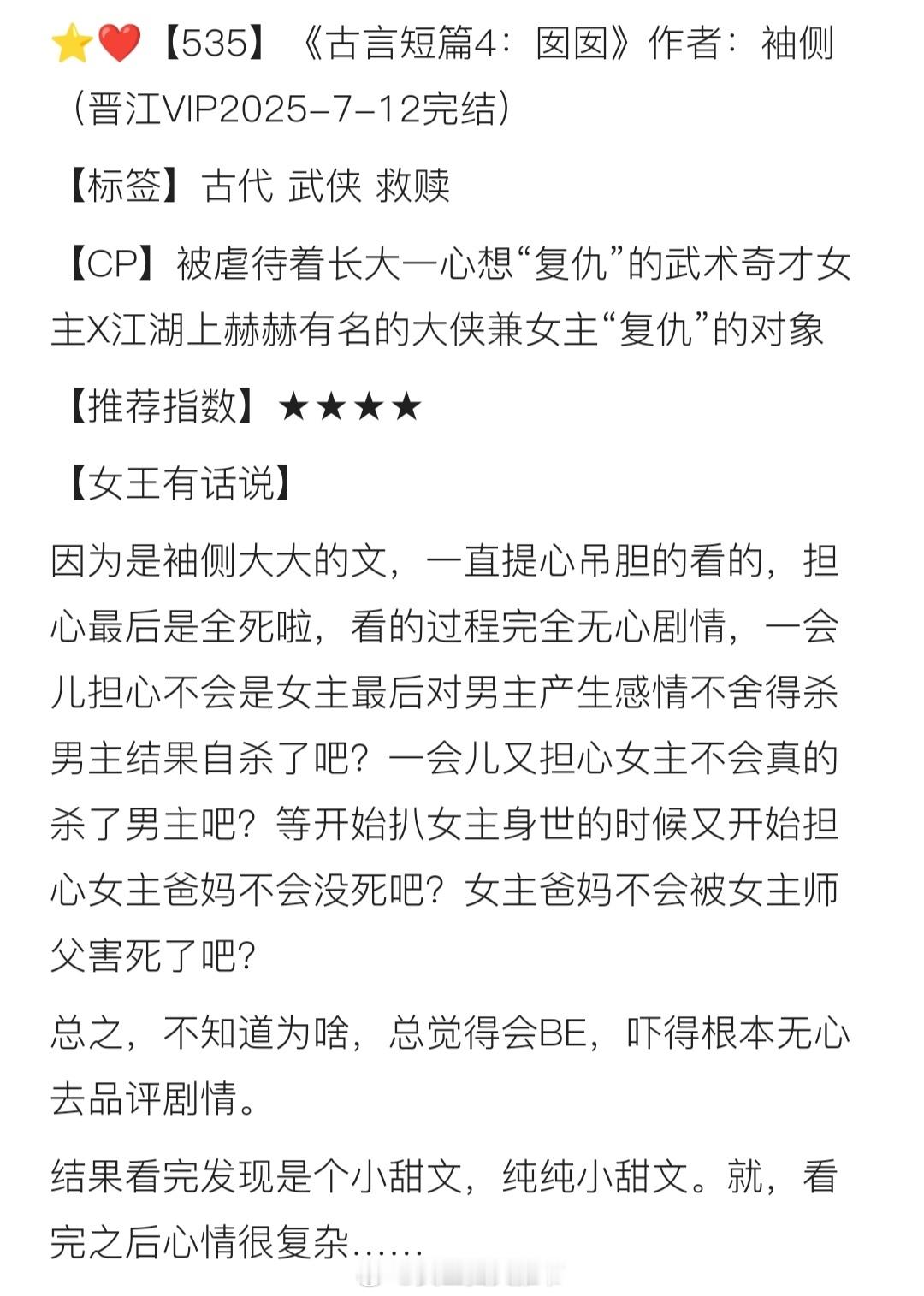 【535】《古言短篇4:囡囡》作者:袖侧(晋江VIP2025-7-12完结)