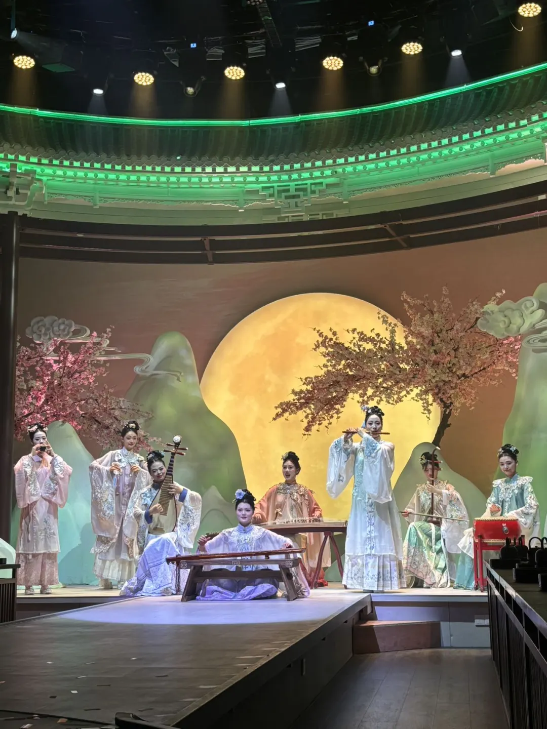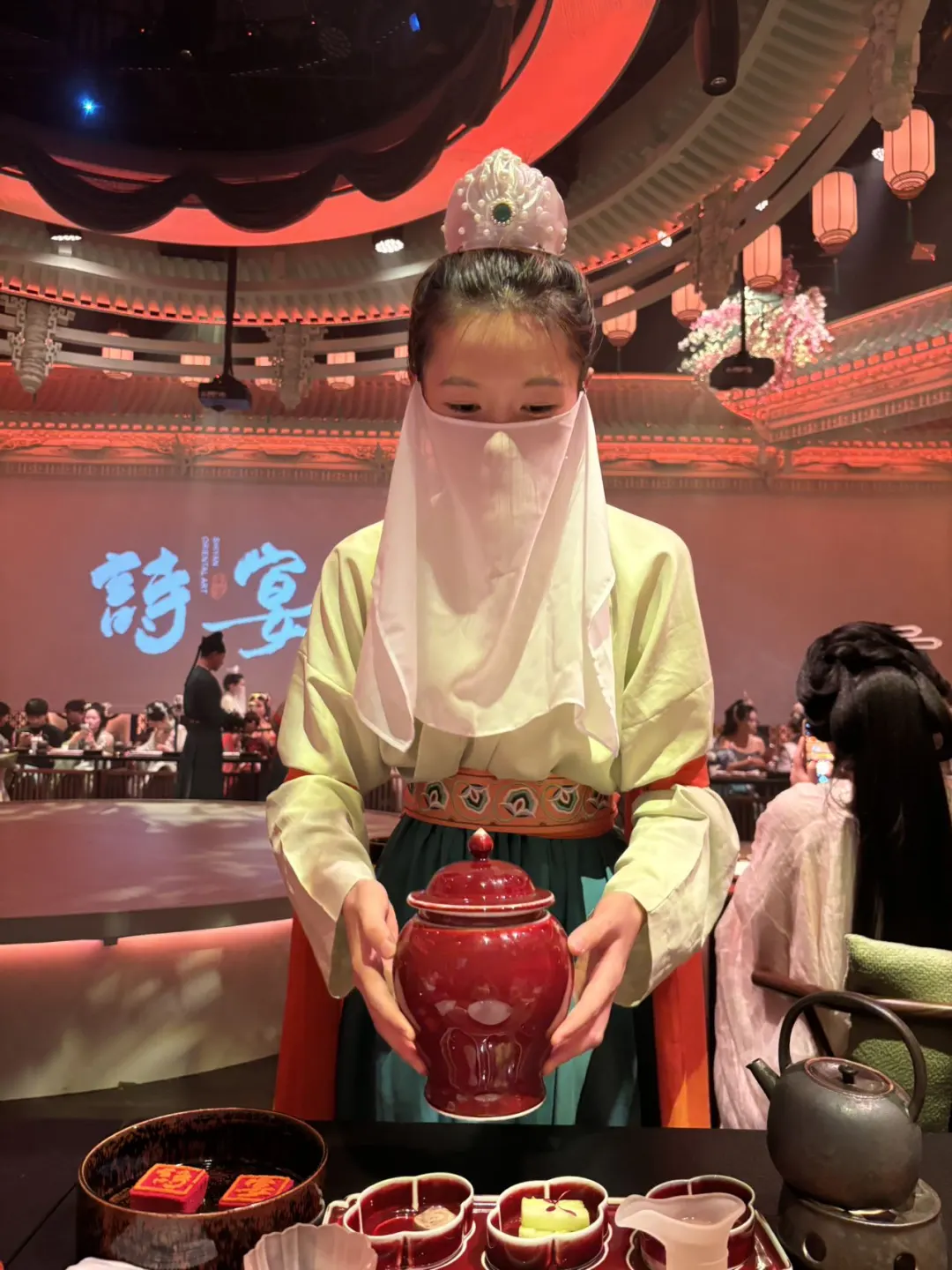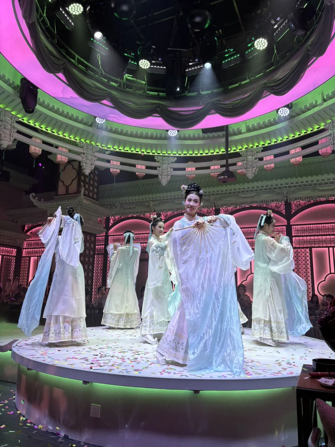 重点吃意境,每道菜配歌舞表演和诗词讲解,跨度汉唐宋元明,还会有NPC下场和观众互动,文化值、体验感拉满!