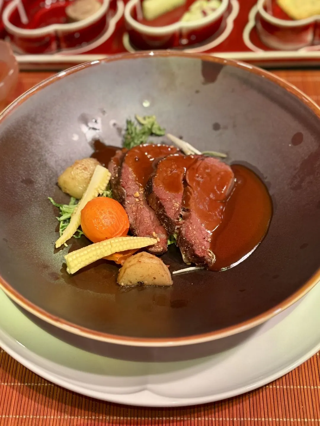 菜品如诗画:有茶有酒有肉~尤其是八珍藜麦情人虾、葱烧焖煮鲜鲍配相思粽、宋味咸豉低温雪花牛肉精致又美味😋席间,只看美人上菜,就是一种享受。
