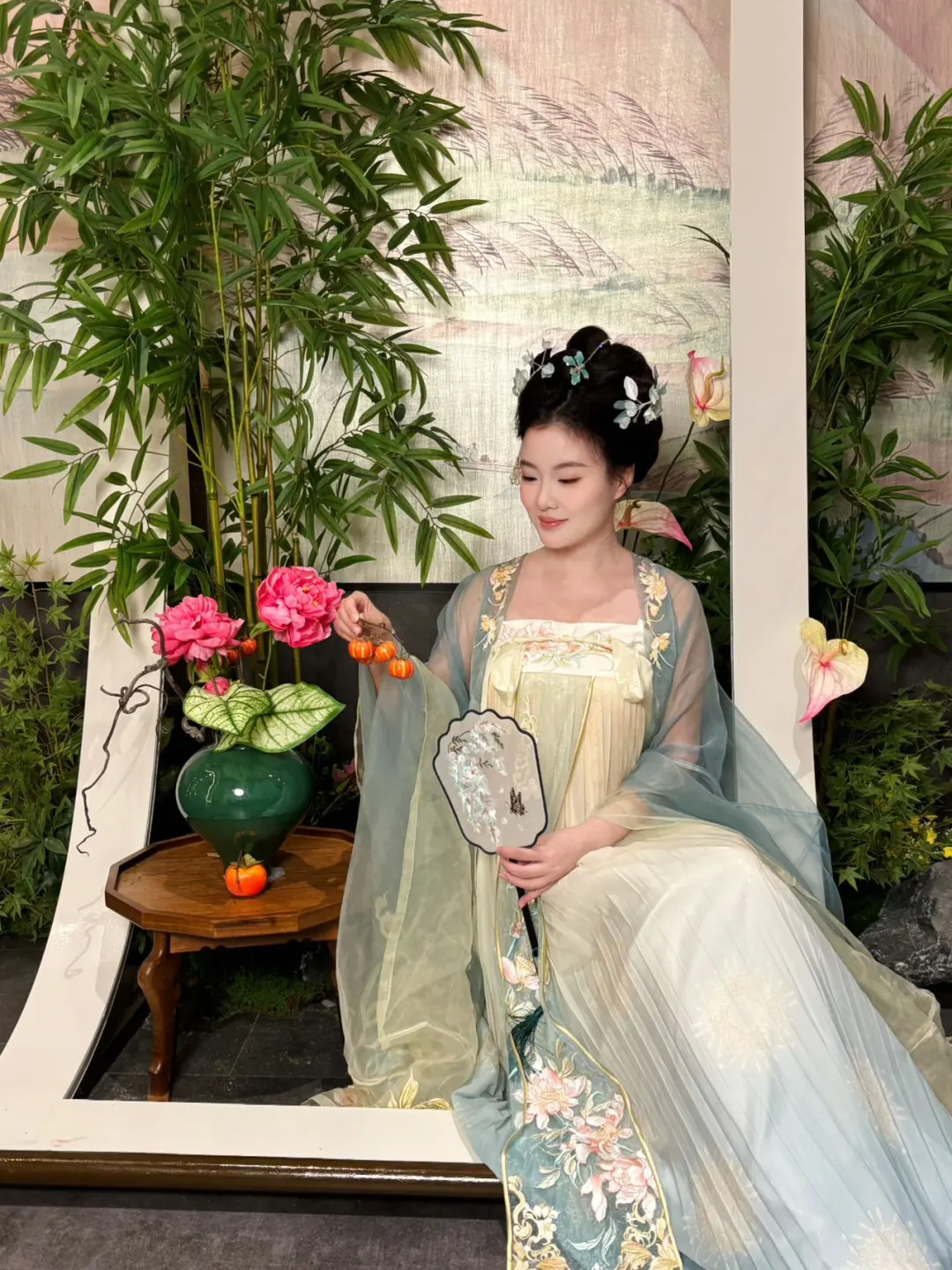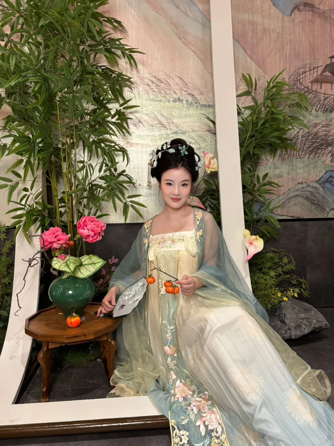 上百套汉服任选:齐胸襦裙、明制马面、敦煌飞天…质感超好还带刺绣,连头饰都精致到流苏轻晃!妆娘手法细腻。20分钟搞定全妆+发型,直接换头术get✅