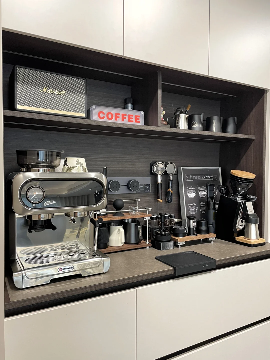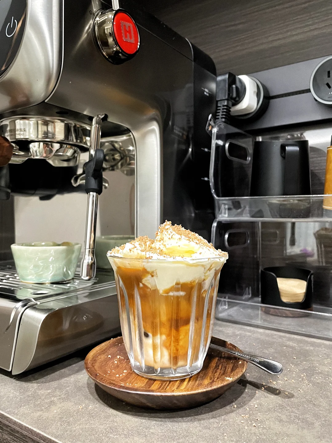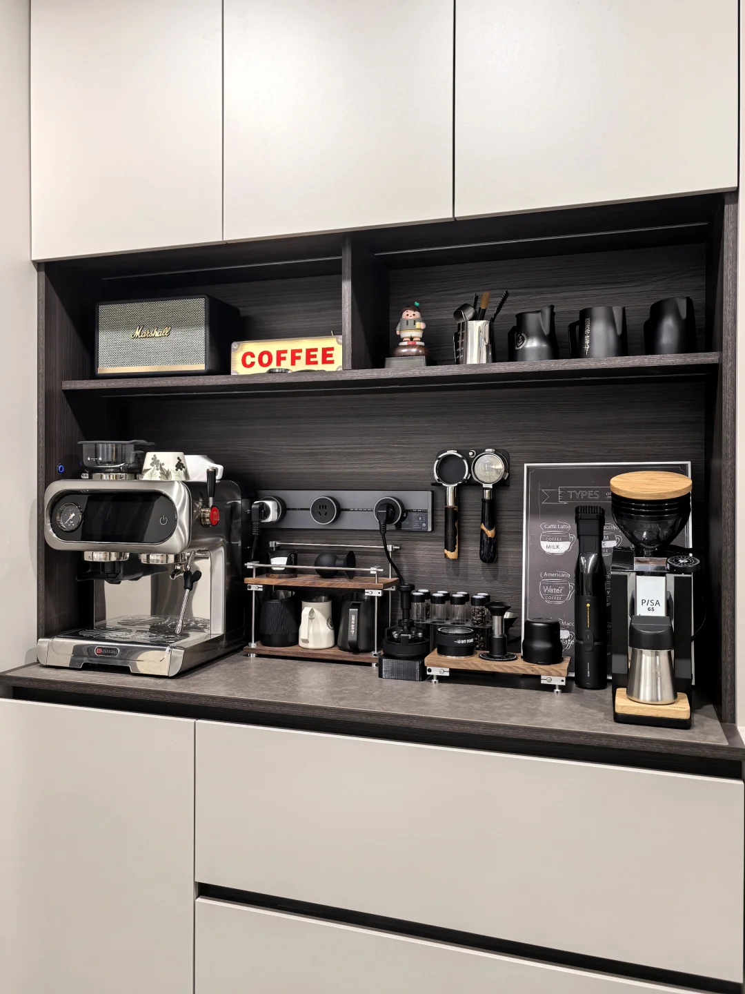 家里这款海氏C5咖啡机,无论是颜值还是尺寸,和这个1.3米的暗色系咖啡角非常搭!海氏这款C5熊猫咖啡机真的太懂收纳强迫症的心了💖