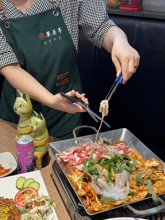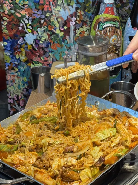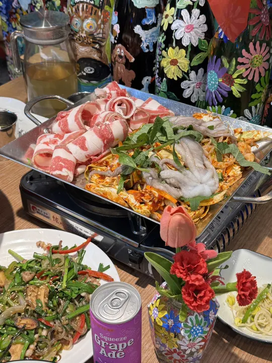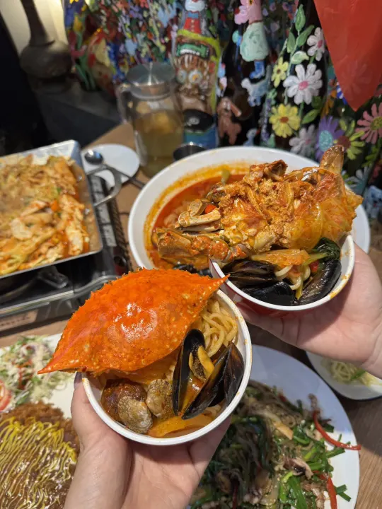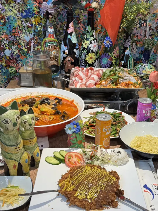 西塔的韩餐千千万,他家可是开了10多年的老店 味道没得说,本地人经常光顾 门口布置超可爱,室内也特别出片 他家的牛肉八爪鱼a+拉面是招牌,超大一份够4个人吃,里面的拉面绝了,甜辣口,越吃越上头 八爪鱼炒杂菜,一定要试试,跟韩国的味道一模一样,好吃 王猪排,比脸还大的猪排,里面竟然还有汁水,太爱了 海鲜炒玛面,ju大一份,看着红红的,一点也不辣,汤底很鲜 来西塔不能不吃他家!