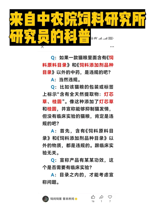 问题来了,这些原料根本就不在饲料原料目录里,这种添加首先就是违规的!也就无需讨论它的临床功效了。商家却硬吹一吃一个准,当天见效,那我建议这种中药应该用于某些潜在犯罪群体,为社会安定做贡献。😑