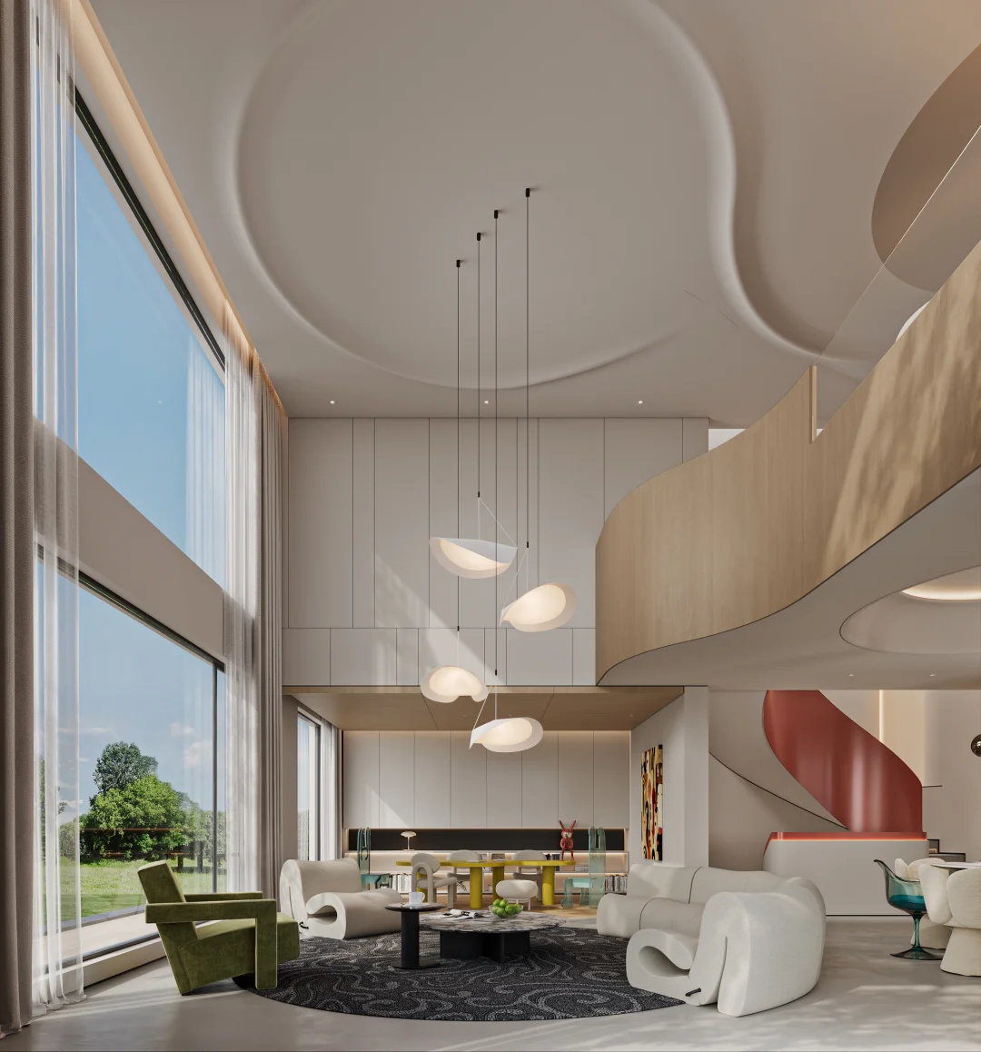 挑空客厅秒变亲子乐园!无电视设计这么香