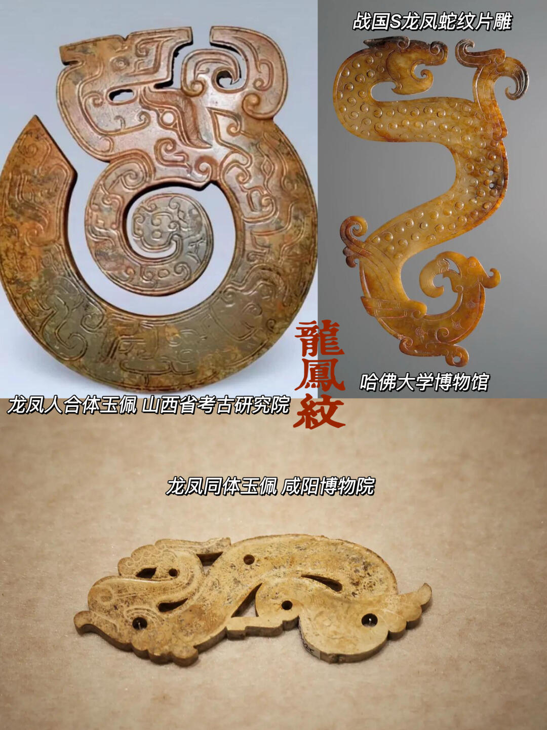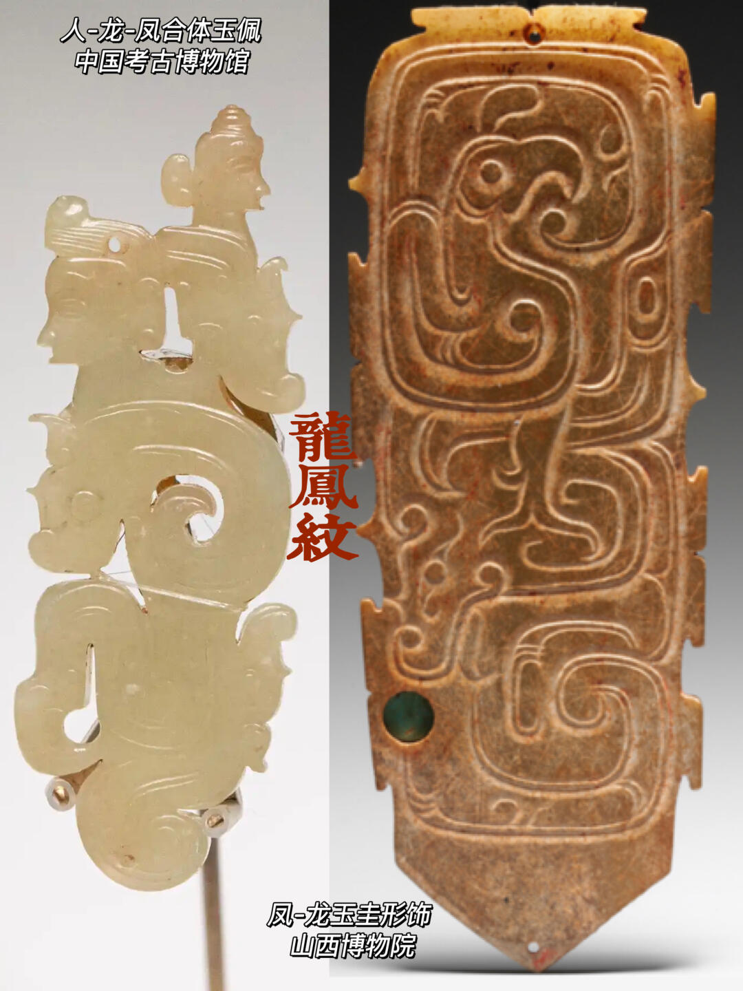 但在很早以前,龙凤的概念便已出现。只有些凤于龙上,推测龙是凤的坐骑,有些龙于凤上,可能龙是凤的冠帽,还有龙凤同体,也许出自《山海经》中的神灵。
