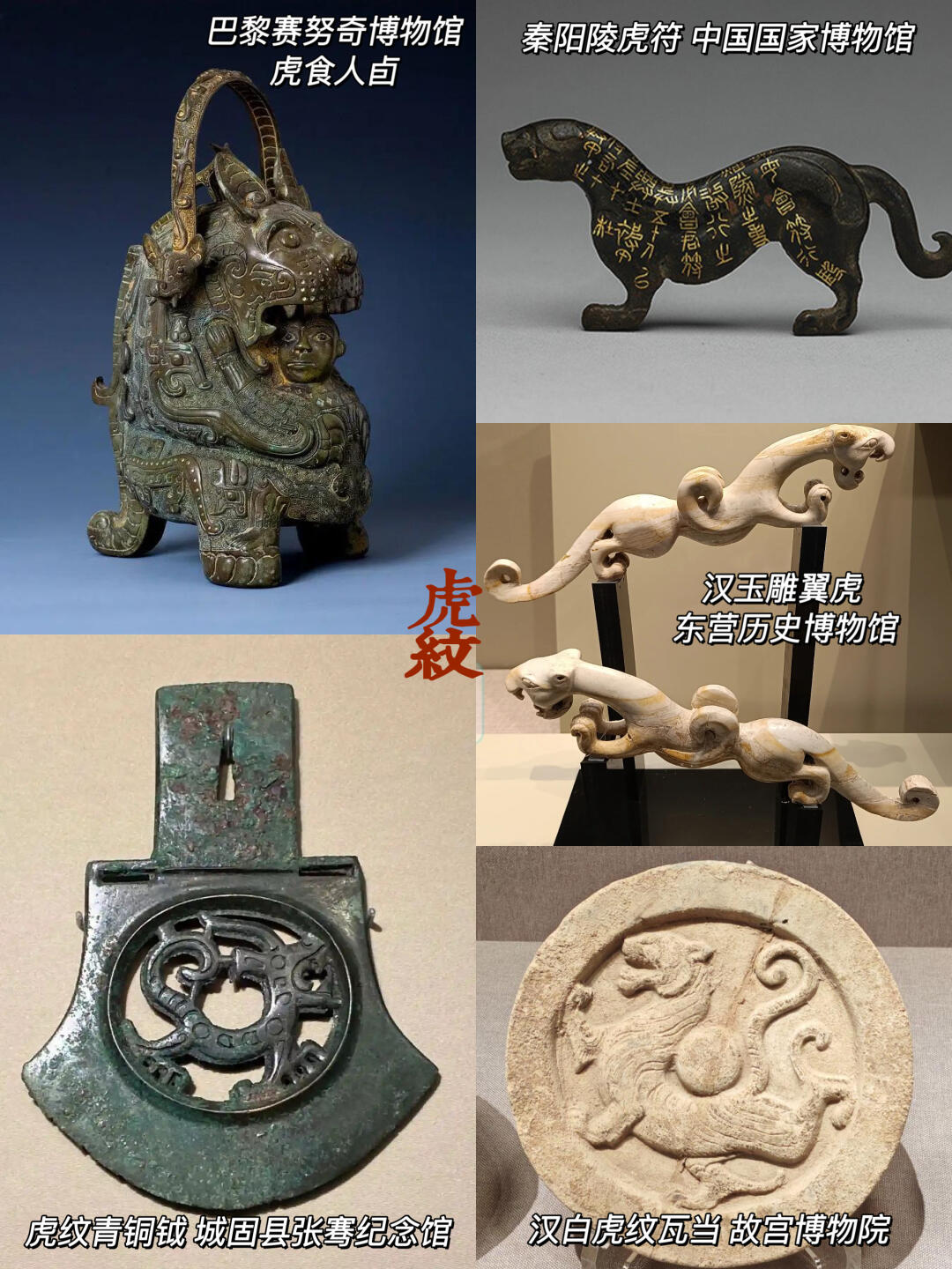 秦朝,虎纹被赋予了军事含义,到了汉朝,它多以“四神”之一的白虎,或是象征升仙的翼虎形象出现。