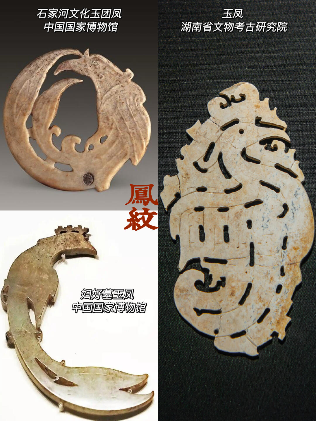 🔸相较鸮,凤所承载的意义更为纯粹,作为百鸟之王,它同样源于太阳崇拜,出现在妇好墓、石家河遗址、金沙遗址等地区,直至汉代以后,才成为了皇后专属。