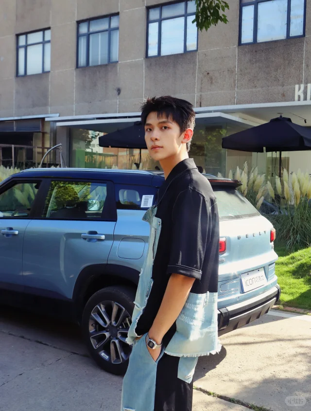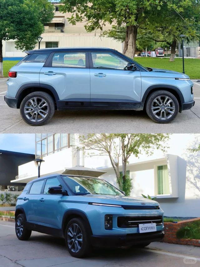 我选的是【海盐蓝】配色!实车是那种低饱和的蓝灰色,清爽又高级,像海边吹来的风~☁️ 搭配黑色悬浮车顶和花瓣轮毂,颜值真的拉满!