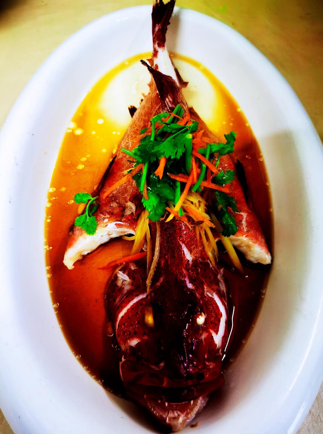 🐟【广式蒸东星斑】火候掌握得恰到好处,多一分则老,少一分则生。鱼汁的味道也是很不错,咸甜适中,为鱼肉增添了一抹醇厚的鲜味👏