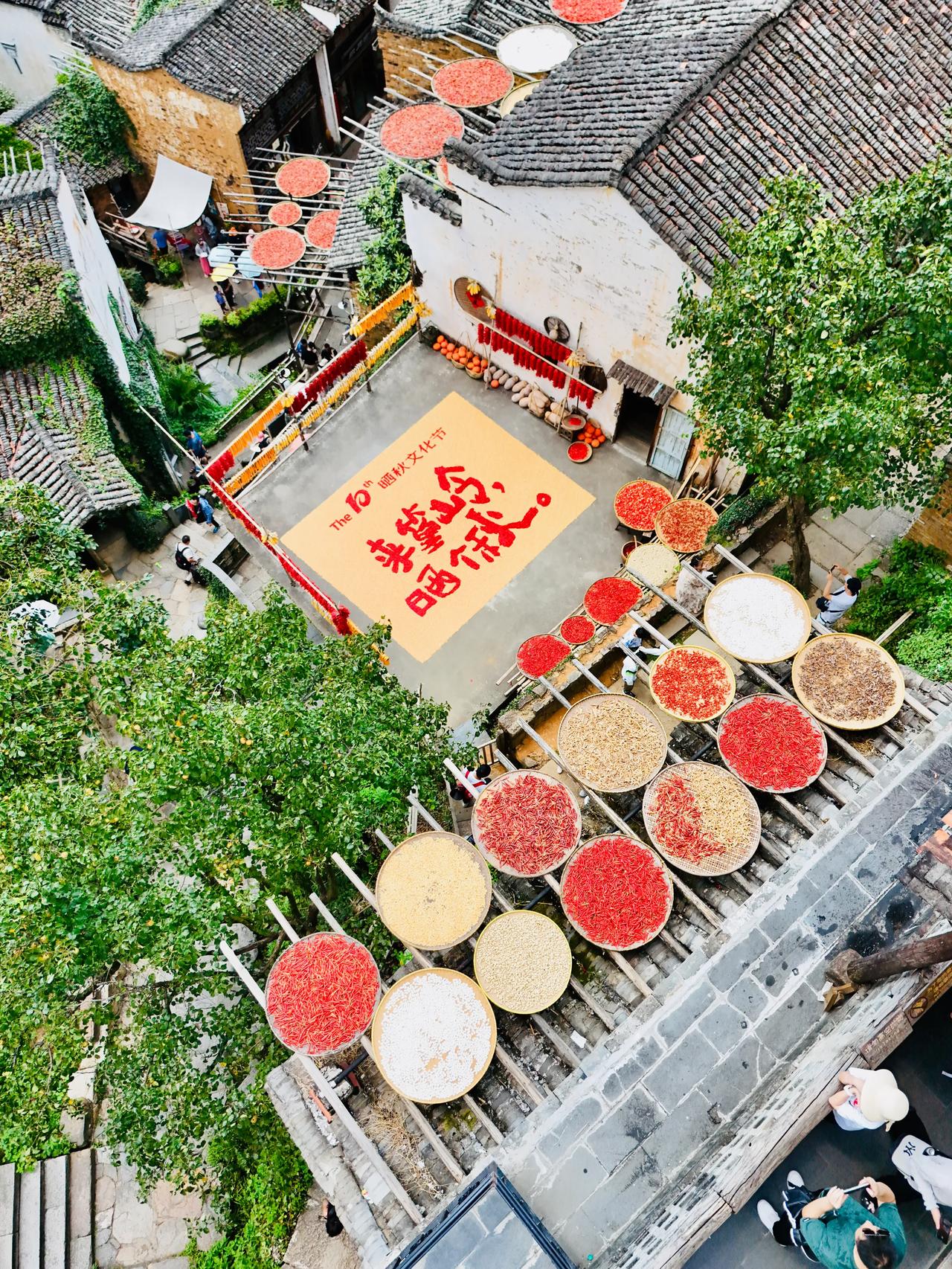 篁岭最详细网红打卡机位,一起来晒秋! 去篁岭旅游偶遇晒秋节开幕,整个活动精彩十足,充满民俗风情! 🌟【晒秋文化节重磅回归】🌟 今年的晒秋文化节,有幸观看到精彩分享与创意SHOW! 👩🏻🌾代表性人物登台讲述篁岭的成长故事,还有庄稼汉队、晒娘队等精彩表演轮番上阵! 更有非遗手信T台秀展示歙砚、徽墨等文化瑰宝!🎨 村长带领的晒秋嘉年华巡游队伍将从祠堂广场一路巡游至五桂堂观景台,快闪表演惊喜不断! 🏅奥运风暴席卷篁岭,村运会火热开启,趣味比赛等你来挑战,胜者还有礼品等你拿! 🌟这届来晒生活节,带你尽情欣赏秋色,晒古村故事、艺术诗意、乡愁文化,一场视觉与心灵的盛宴!🎉 从互动展览到竹编诗歌艺术装置,每一处都是惊喜! 走进篁岭古村,重温童年记忆,感受非遗技艺的魅力吧!🎊 📸【晒秋打卡攻略】📸 1️⃣ 晒工坊 晒秋去哪儿最美?篁岭的晒工坊绝对是经典打卡地!这里不仅景色超赞,还能看到乡音浓厚的晒秋大妈晾晒辣椒、玉米,别有一番风味🌽🔥 2️⃣ 五桂堂观景台 这里是摄影爱好者的天堂,站在这里高处俯瞰,整个篁岭的晒秋美景尽收眼底📷🏞️ 3️⃣ 摄影吧 以窗为画框,哪怕是拍照小白,也能拍出360度无死角的美照✨📸。赶紧来篁岭体验这些绝美的晒秋景色吧!🍂 4️⃣ 花溪水街 水街阶梯从上而下,中央水流潺潺烟雾缭绕,两边商铺林立,很有烟火气! 5️⃣ 晒秋平台 拿上红辣椒、大南瓜道具,来晒秋平台打卡吧!融入这喜气洋洋的氛围之中✨ 6️⃣ 爱国墙 天街上有一个酷似中国地图的墙,引来很多人围观,可以打卡拍照! 快来一起晒秋,一同体验篁岭的独特韵味吧!🍂✨