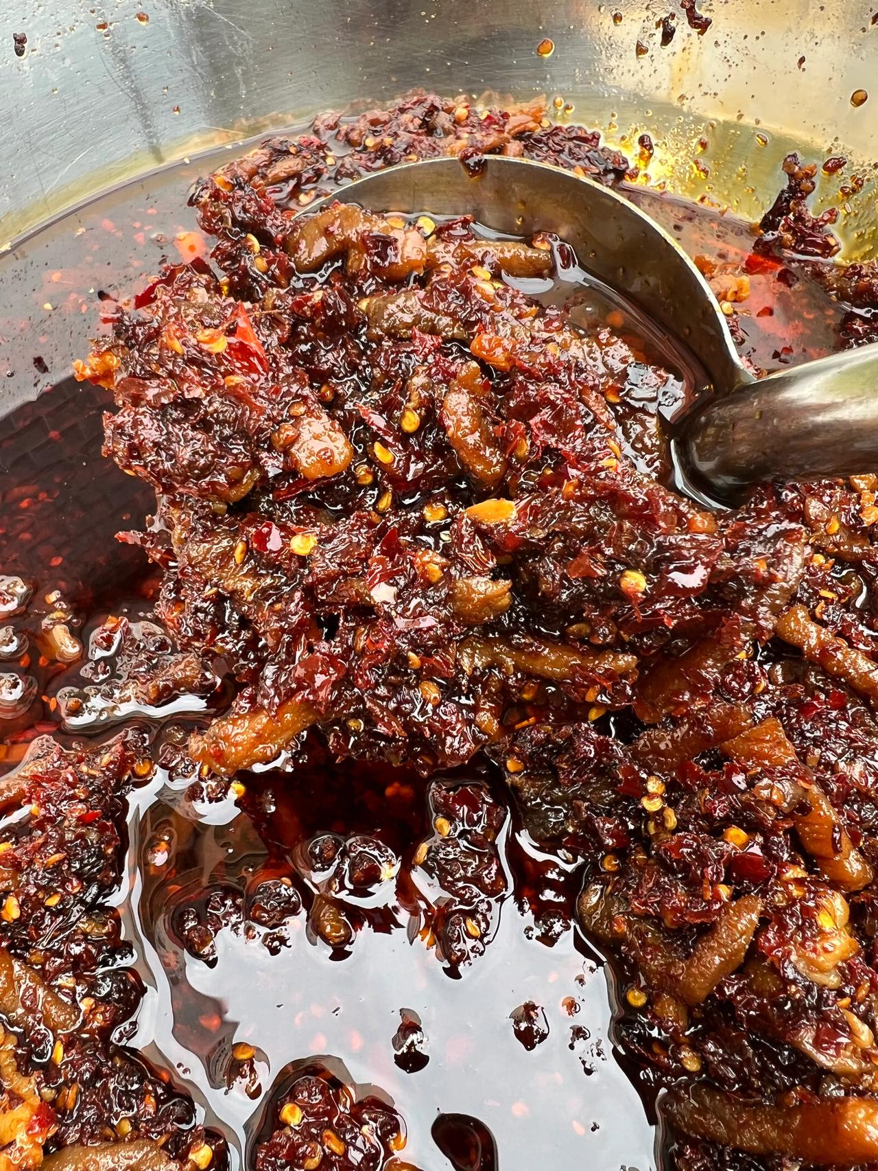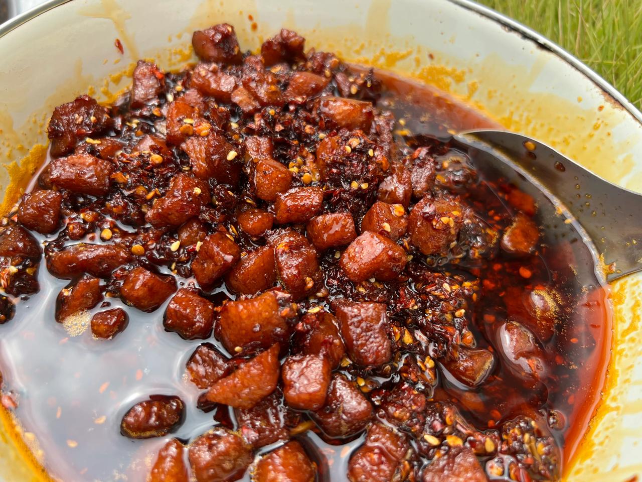 贵州香辣脆哨油辣椒,用来拌饭,拌粉拌面都可以的辣椒,里面是猪肉哦,早餐无肉不欢的朋友可以看看。贵州糯米饭打卡 饮食贵州