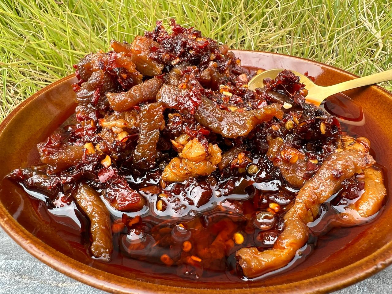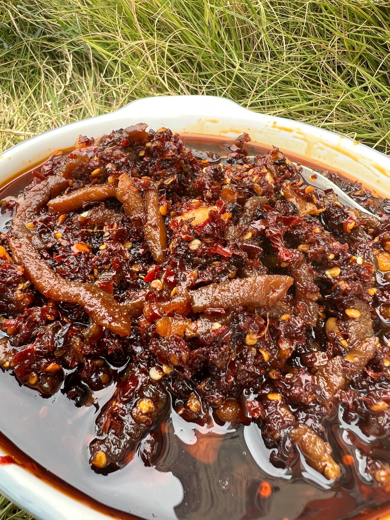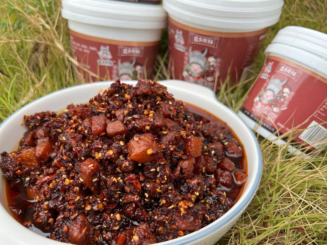 贵州香辣脆哨油辣椒,用来拌饭,拌粉拌面都可以的辣椒,里面是猪肉哦,早餐无肉不欢的