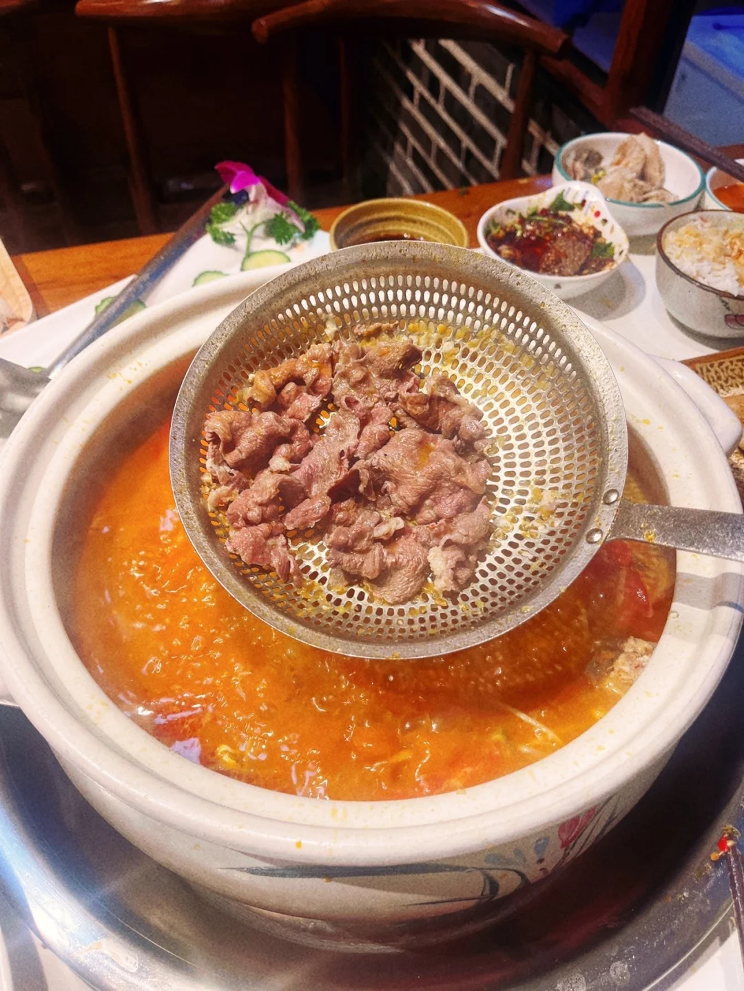 📍位置:滇池湖畔西路苗婆婆酸汤火锅 💥正宗贵州凯里酸汤 一口下去酸辣鲜香直冲天灵盖! 汤底是用野生番茄自然发酵 酸得醇厚 辣得过瘾 越喝越上头✨ 🥩新鲜现切黄牛肉 肉质嫩到在舌尖打滑! 在酸汤里涮个10秒 吸满汤汁的牛肉香到跺脚🤤 🌟必点推荐: 酸汤锅底+鲜切牛肉+贵州特色蘸水 一口肉一口汤 酸辣开胃秒变干饭人! 💬姐妹们都给我冲! 这家绝对是我在昆明吃过最正的贵州酸汤 吃完还想舔锅底的程度😭
