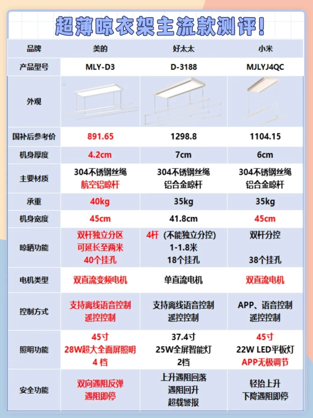 主流款电动晾衣架对比,适合自己最重要。
