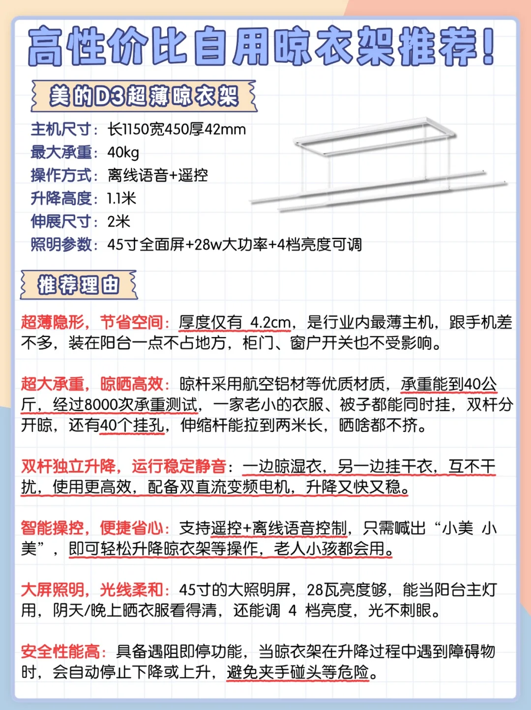 综合多方面剖析给大家推荐这款:美的D3超薄晾衣架!