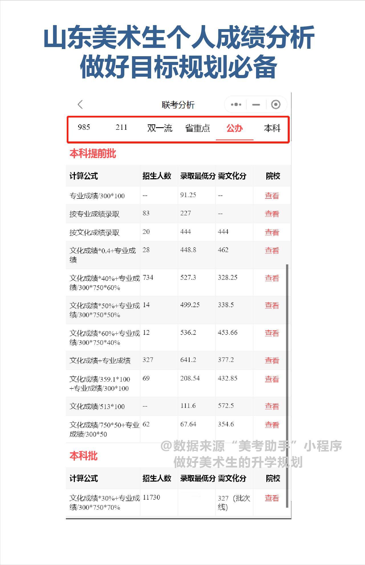 山东美术高考竞争极其惨烈,2个美术生里面只有1个能上本科,40%的考生能连双过线都达不到! 主要在于没有动力,规划和动力出现了问题! 来看一下录取情况分析,对比近两年来的成绩,看看你的成绩要考上985和211所需要多少分数,早做准备吧!