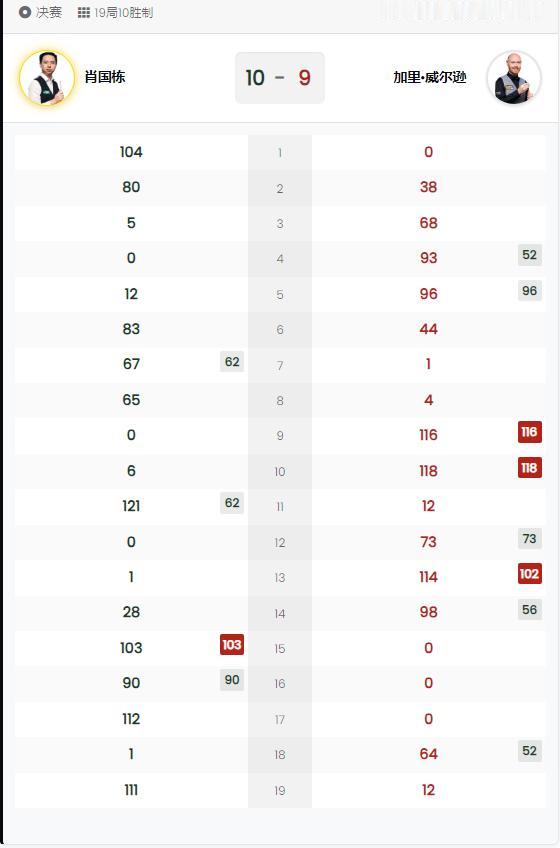 这个冠军来得实在不容易,2025世界斯诺克武汉公开赛,卫冕冠军肖国栋依靠1杆破百和3杆50+,打败了加里.威尔逊(3杆破和5杆50+),数据不如对手,凭借着大心脏和对手苦苦纠缠,并在决胜局拿下对手,夺得冠军,成为了中国第一个斯诺克卫冕冠军。