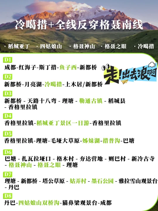 📍格聂+冷嘎措+稻城亚丁+四姑娘山 8天大环线 纯玩小团