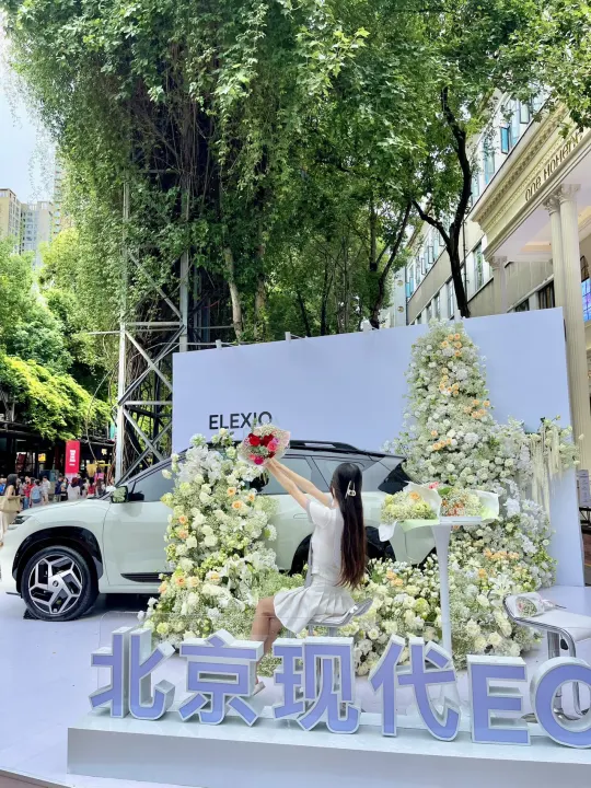 刚刚被一辆车美到了‼️ 📍就在东郊记忆东舞台附近~ 银河流光的车身披着漫天玫瑰🌹, 一大片玫瑰瀑布,太浪漫啦~💕 🌈 北京现代EO(ELEXIO)打卡攻略: ✔️现场送玫瑰,先到先得! ✔️专业摄影师帮忙拍照,立马出片 ✔️🆓打印明信片,带走浪漫瞬间