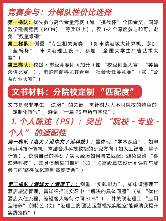 ❌文书别套模板!申理工要写实习成果,比如“优化流程省30%时间”;申浸会传媒记得附作品;面试提前练,城大常考小组案例,教大要试讲,练2遍就不慌!
