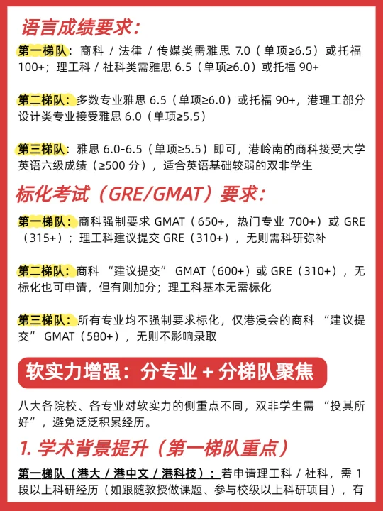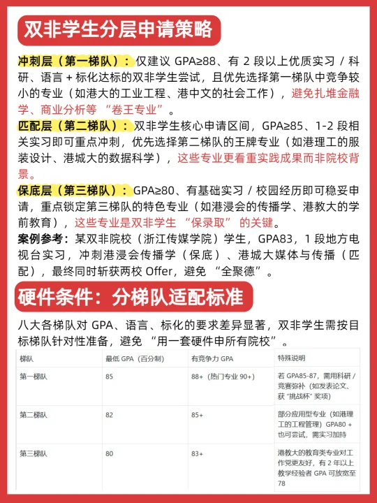 🔥冲刺档(港大/中文/科技)得GPA88+,商科还要GMAT700+,但可避开金融这类卷王专业;
