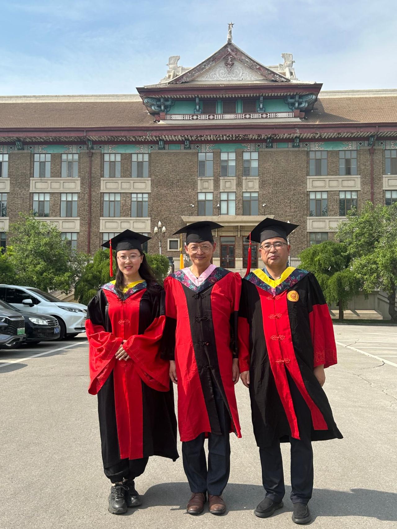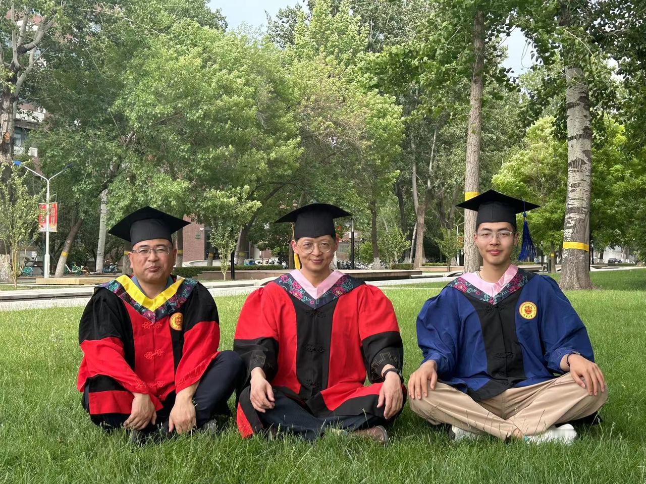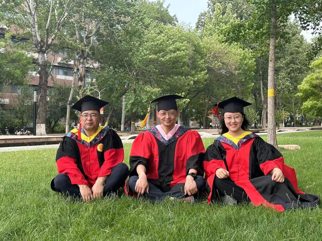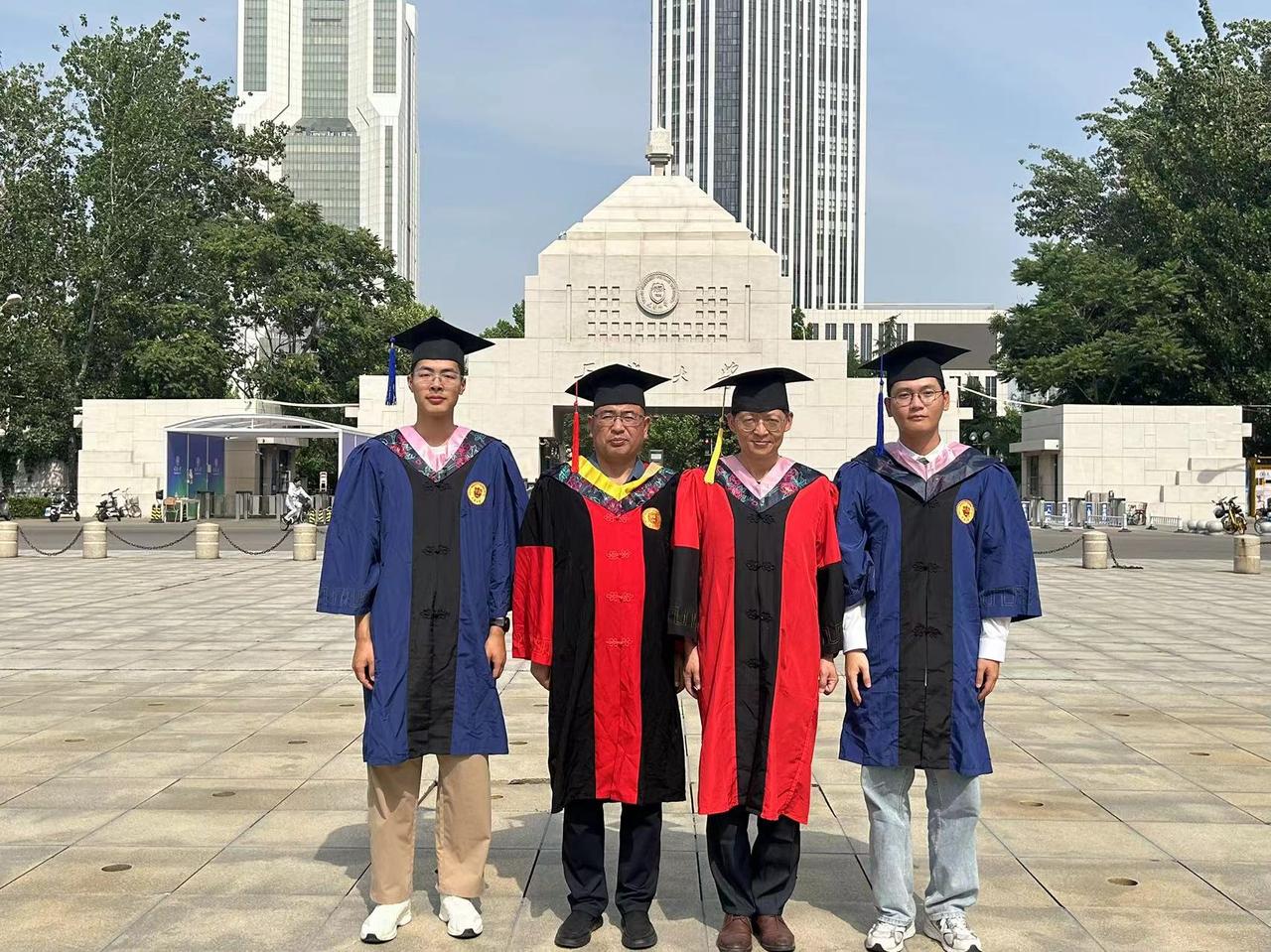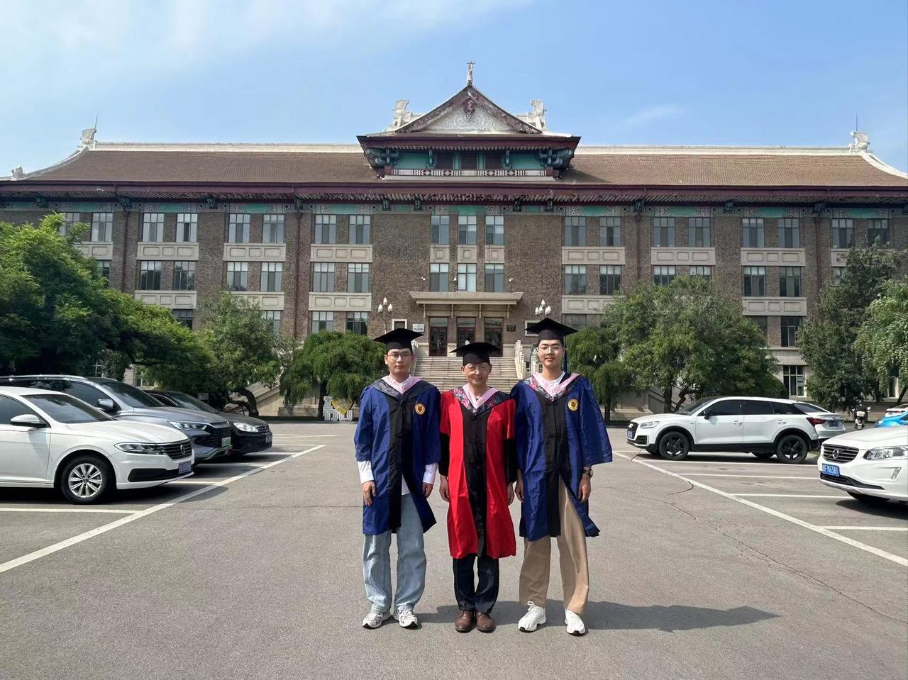 下午,太阳大,风大,和去年和今年毕业的博士生、硕士生们毕业留影。有几个考公的学生去最后办入职手续缺席,在场的同学们一起把仪式补齐。有同学突然发现一个神秘现象,目前毕业的三位工科博士他们每个人的名字取一个字就形成了我的名字。马延孝博士,刘智英博士、刘垚瑶博士。今年毕业的硕士一个去了浙江杭州,进高校,一个去回山东进入公务员队伍,一个继续读博,还有朝鲜的同学即将回国。大家都算圆满!假以时日都比老师强。[玫瑰][玫瑰][玫瑰][拥抱][拥抱][拥抱]毕业季学位服仪式感拉满
