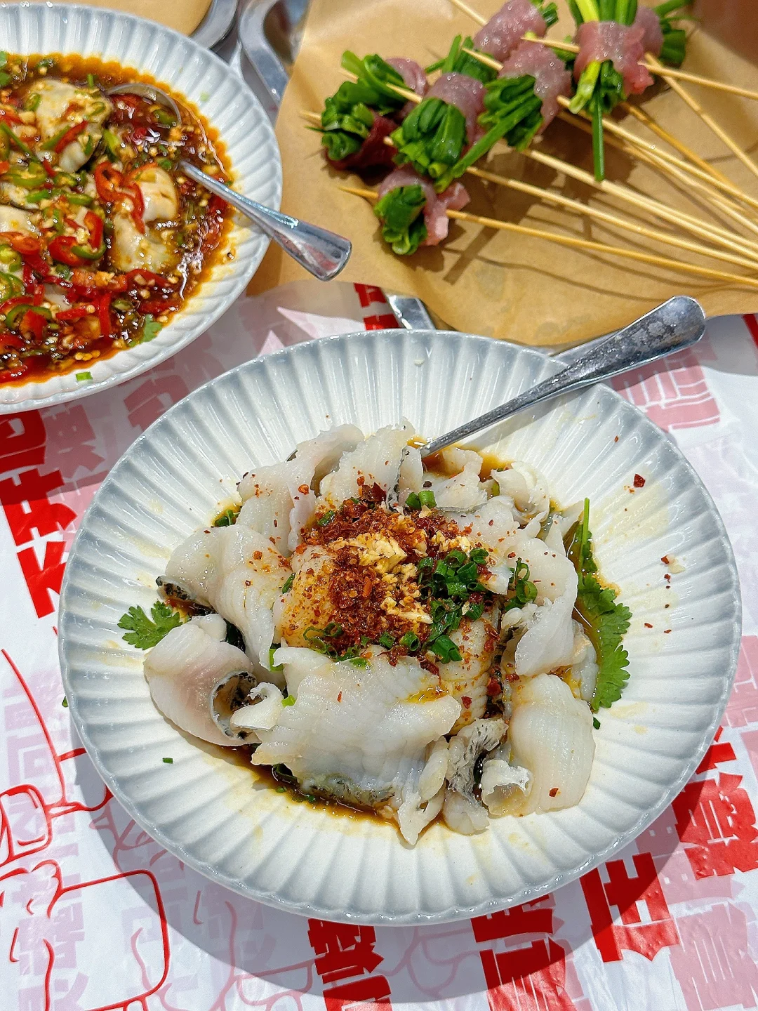 🐟〔金牌脆鱼片〕:鱼肉嫩滑无刺,蘸上特调酱料,爽脆,芥末口味很上头。