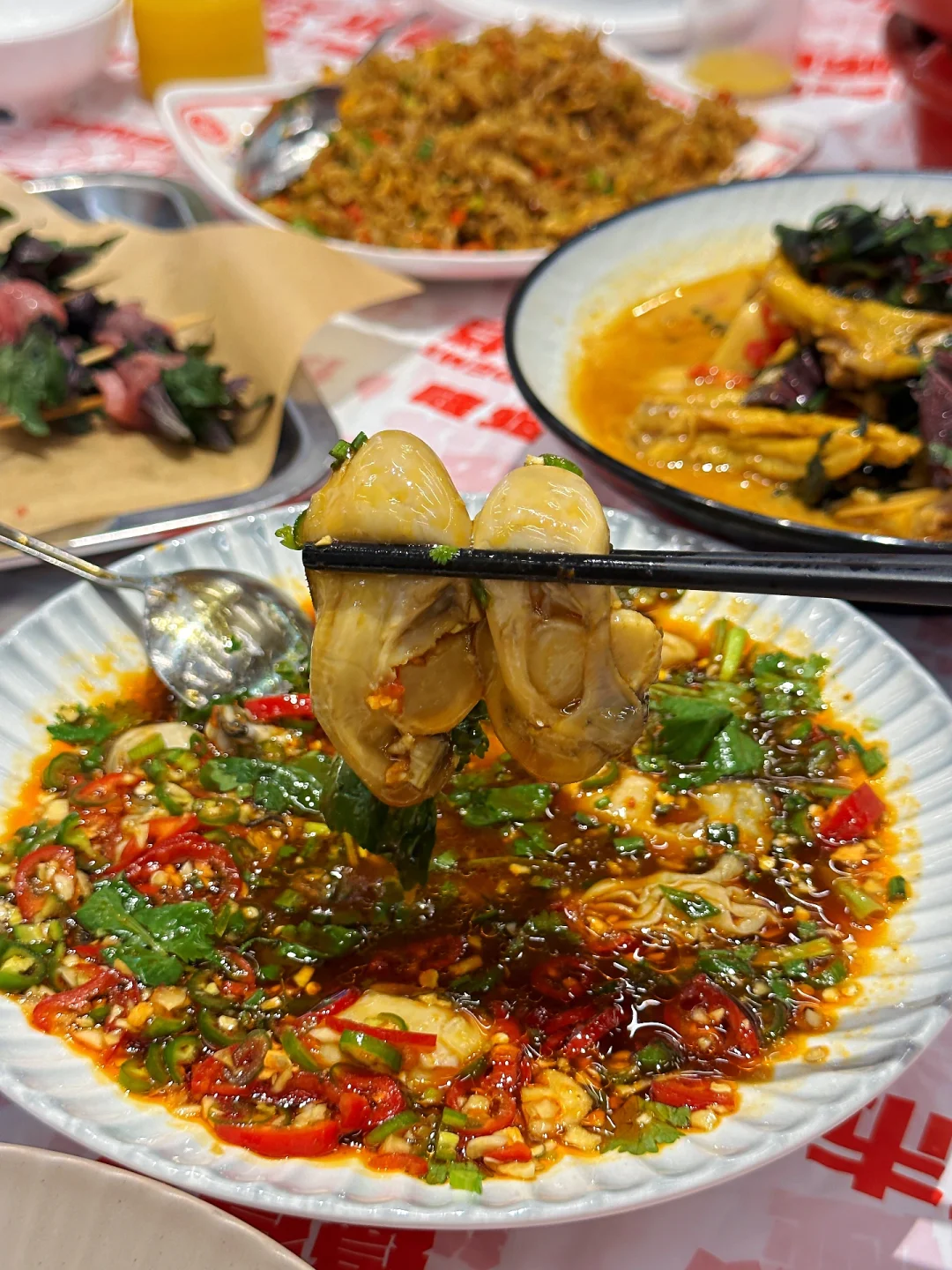 🦪〔捞汁生蚝〕:肥美生蚝浸透秘制捞汁,酸辣鲜甜,冰冰凉凉,一口爆汁很开胃。