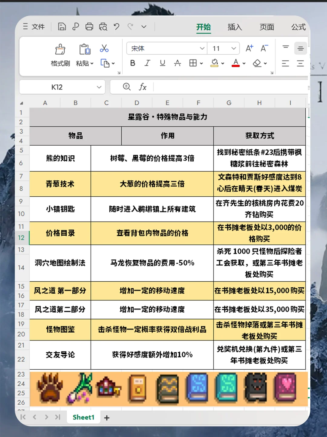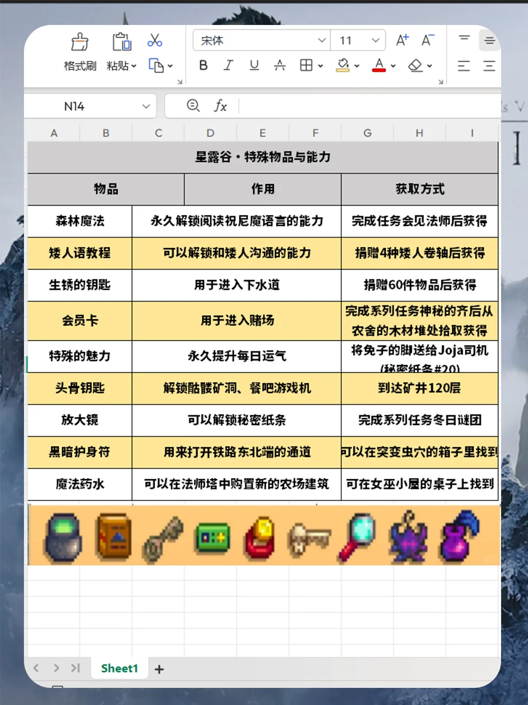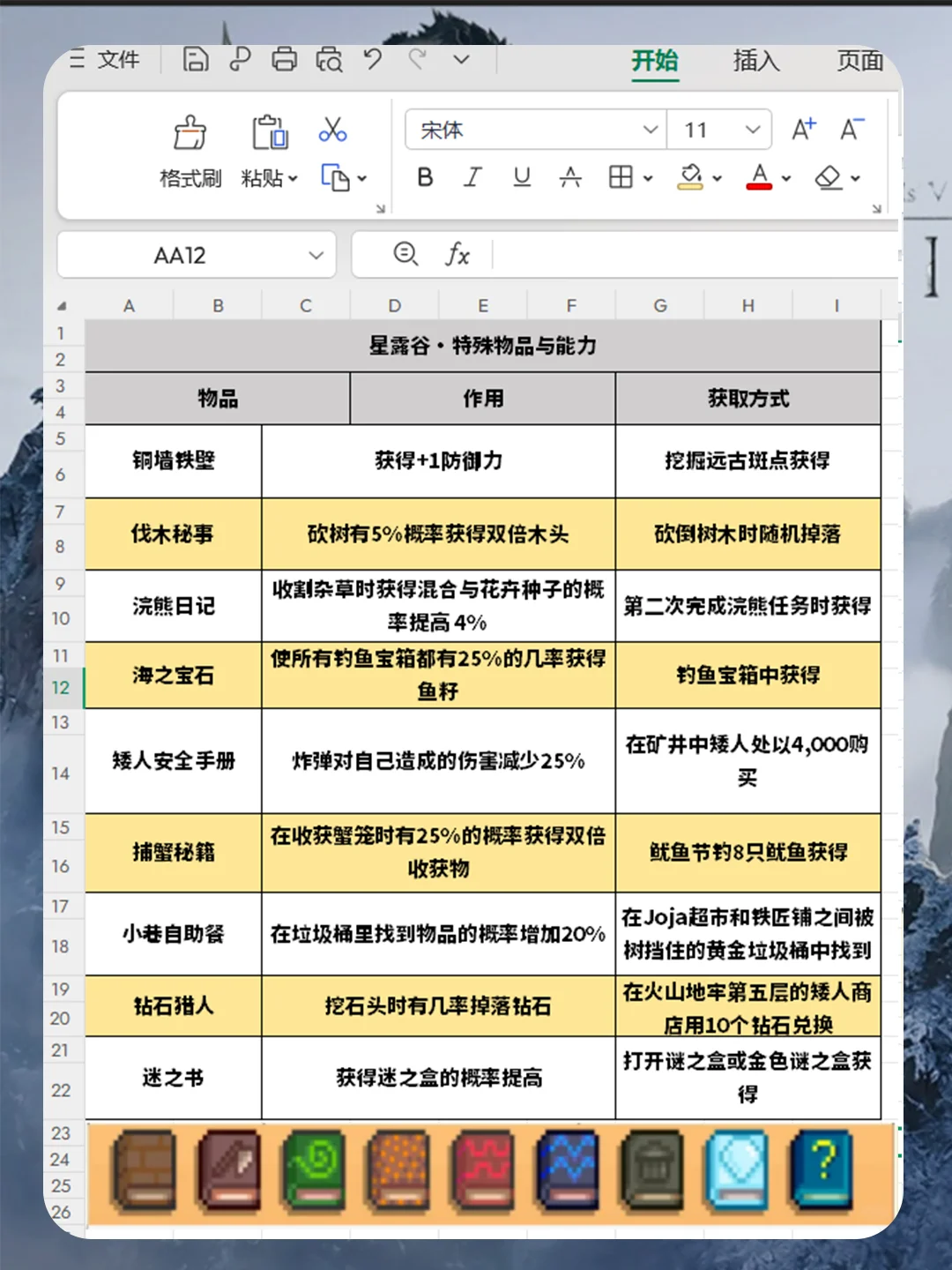 所以今天我专门做了个表格给大家[哇R] 星露谷物语 星露谷物语攻略 星露谷特殊物品与能力 游戏 游戏推荐 最近好玩的游戏 种地使我快乐像素风的游戏 游戏攻略 Steam游戏