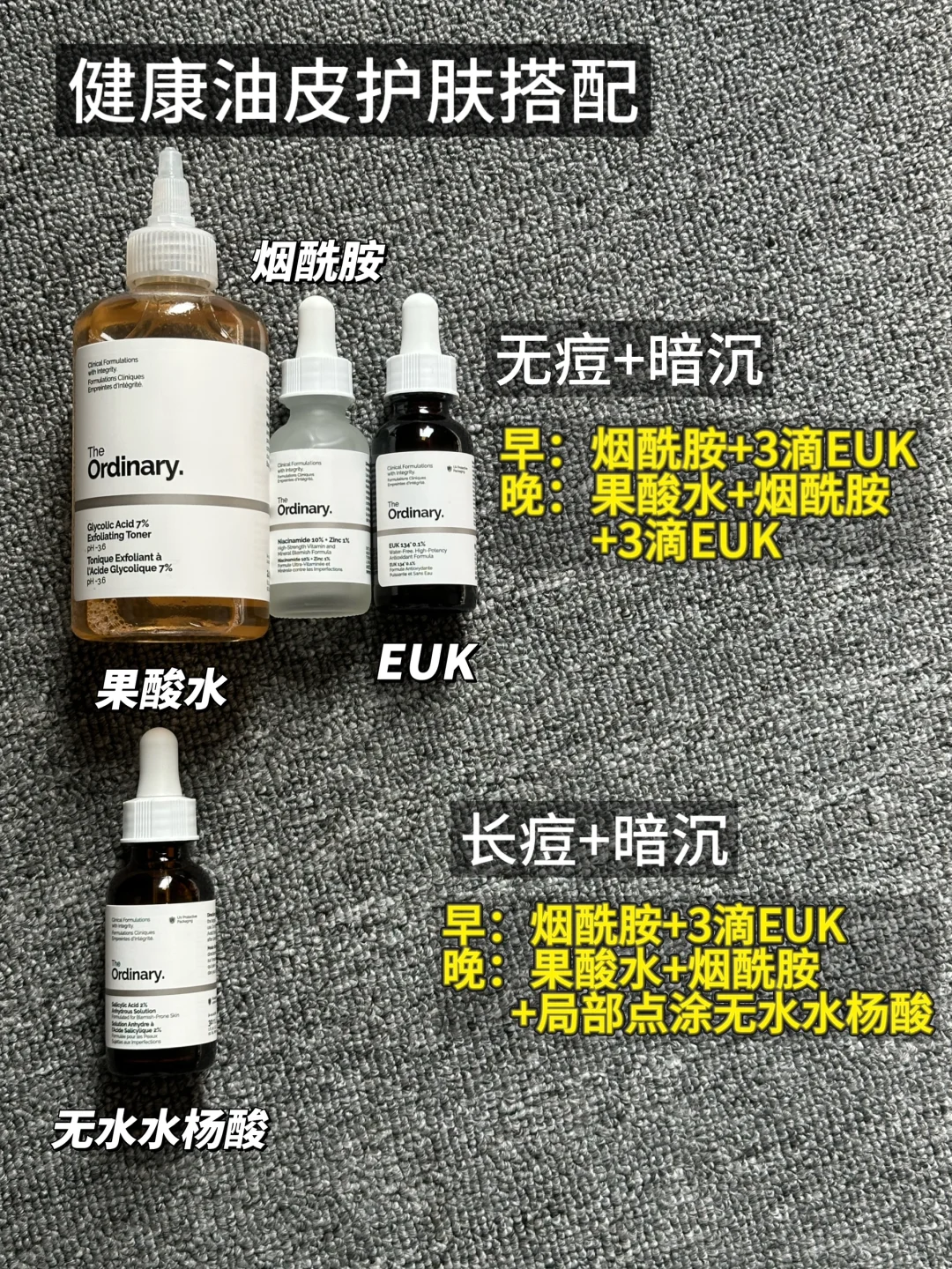 🌛晚:果酸水+烟酰胺+3滴EUK