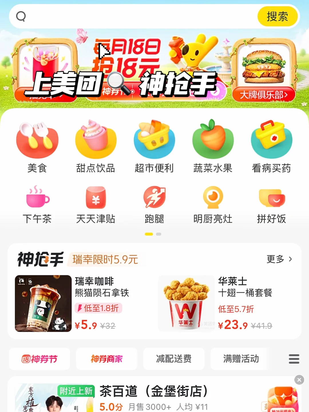 打开美团/美团外卖搜【神抢手】