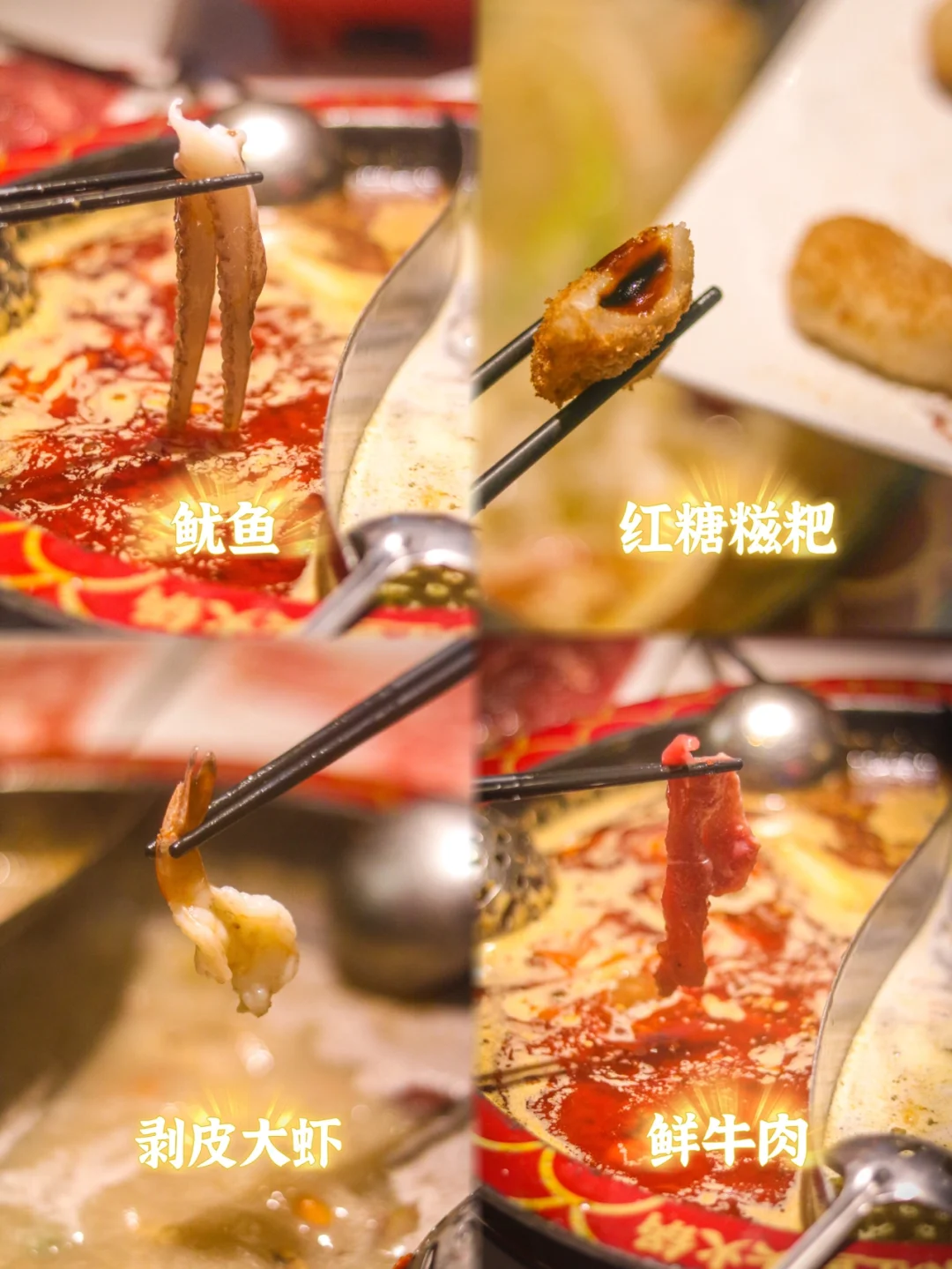 🥘还有几个让我们吃完都给予肯定的菜品:鹅肠、鱿鱼、大虾、虾滑、鲜牛肉、肥牛,顺德作为美食之都,出品都讲究新鲜!真的很值得一试,还有饭后甜品红糖糍粑,真的好特别,红糖汁从糍粑里爆开,口感绝了!