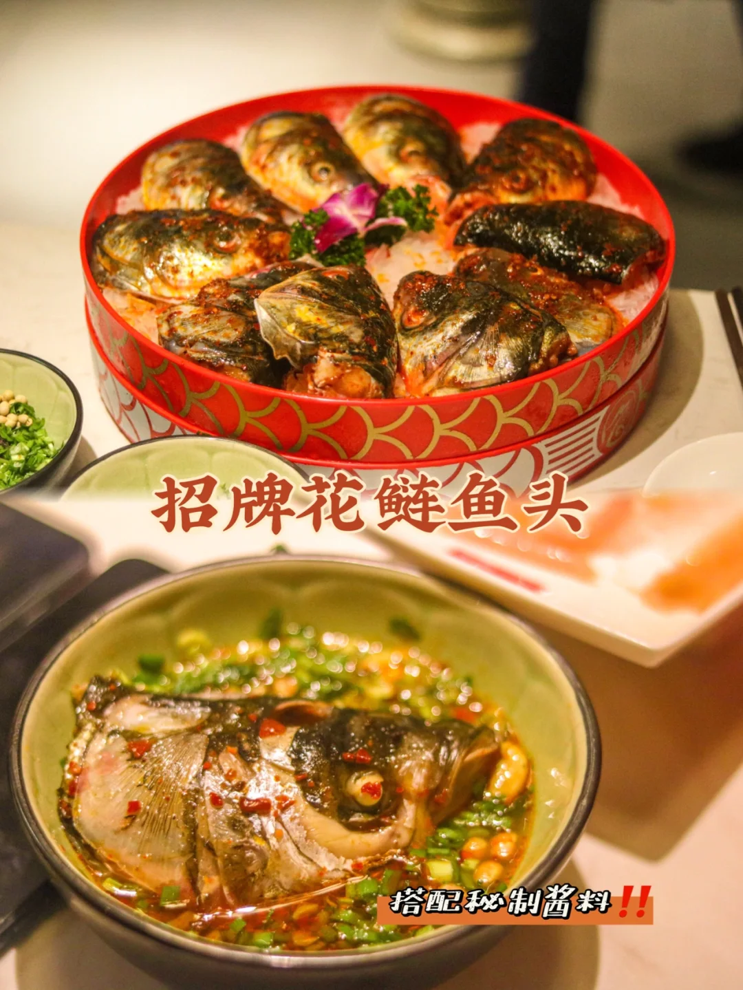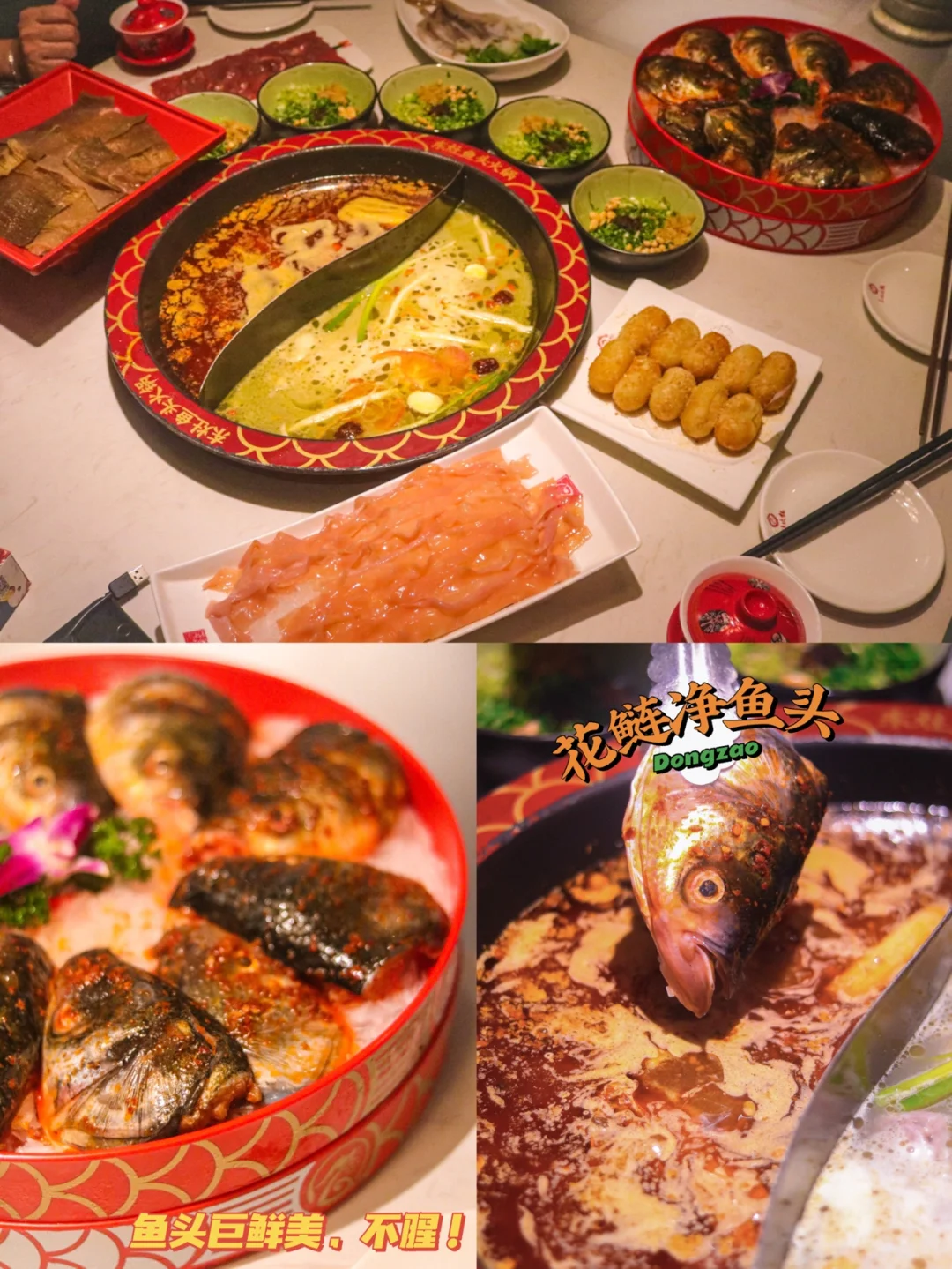 我们三个人一共点了五斤鱼头‼️平均一人5个鱼头都不够分,真的太好吃了!鱼头没有一点腥味,鱼质非常新鲜,整个鱼头基本都能吮光!放到辣锅底煮更够味💯还想表白东灶特调的味碟,搭配鱼头简直一绝‼️