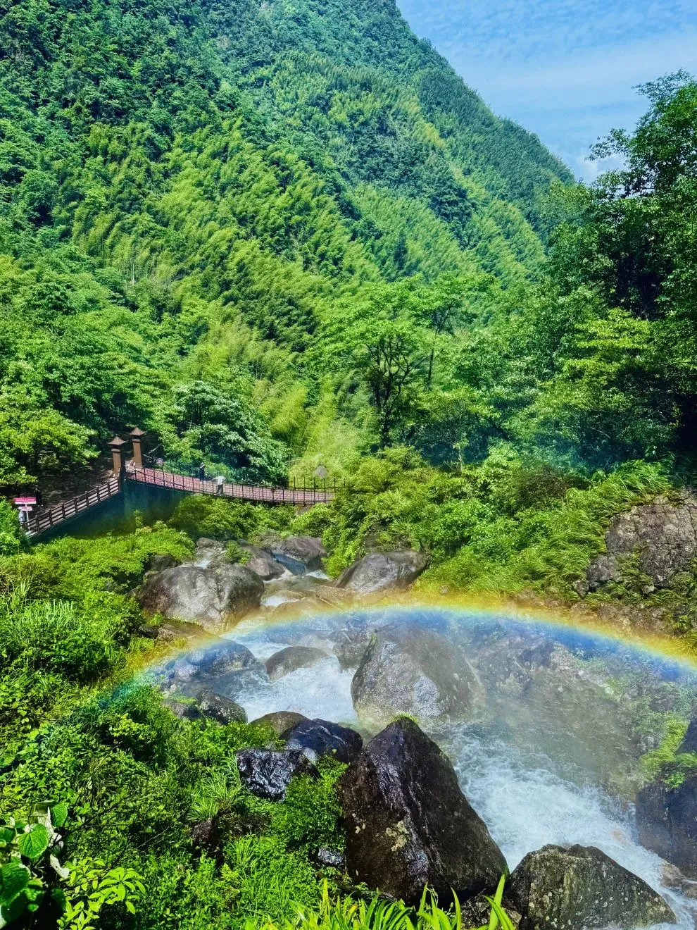 竹林与瀑布交界处:翠绿的竹林搭配磅礴的瀑布,一静一动,很出片。