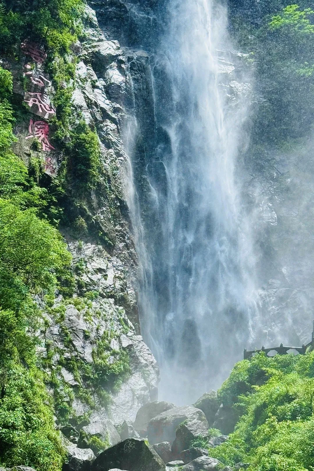 云谷飞瀑观景台:能拍到瀑布全貌,站在观景台上,背后是飞溅的白色水花,超震撼!