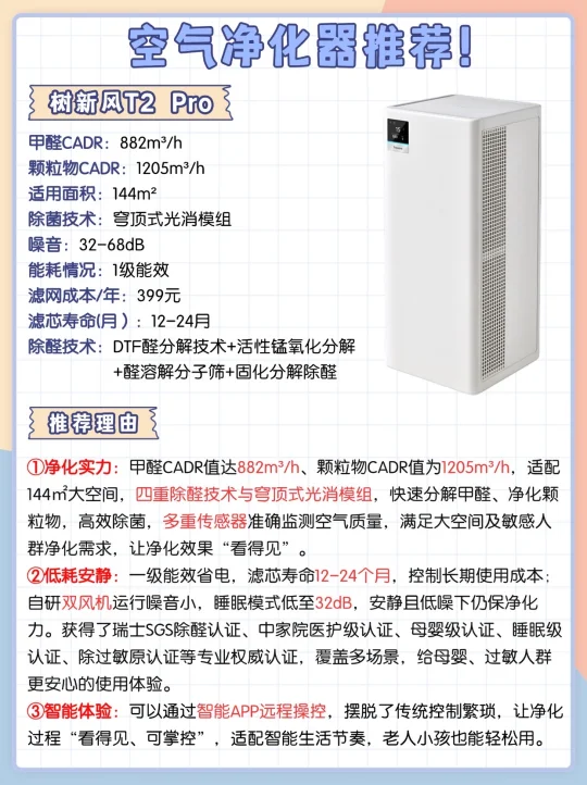 ⭐认证标准:建议选有3项及以上认证,覆盖除醛、母婴、睡眠等场景的机型,买着更安心,适配母婴、过敏体质家庭 。