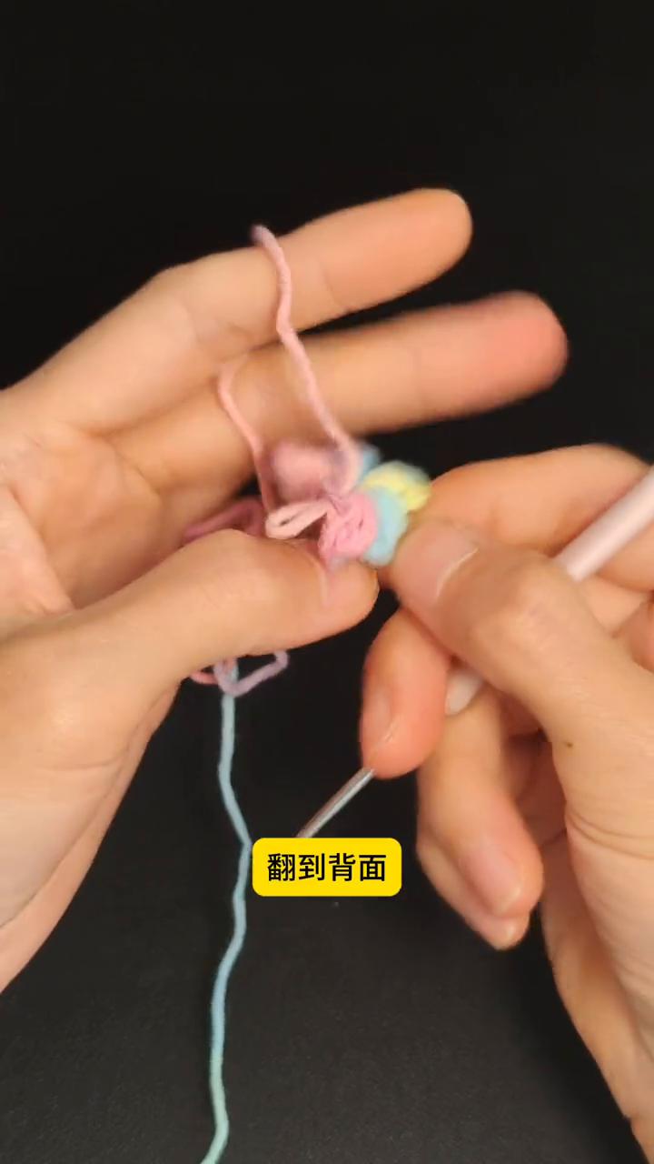 手把手教你钩织这朵小花花。 ·四股棉线和2.5毫米的钩针,先用这个色环形起针绕两圈,两个锁针。接着环内钩5个未完成的中长针,钩针带线一并退出,三个锁针,环内引拔,第一组就完成啦。 ·现在钩织第二组,两个锁针,环内钩5个未完成的中长针,钩针带线一并退出,三个锁针,环内引拔,第二组就完成啦。按照同样的方法还要钩3组,5组完成。 ·拉大线圈,翻到背面,拉动短线,拉动收缩的线圈,逆时针拉动。接着拉动短线回到正面,在开头的锁针洞里再引拔一次,把线头藏到背后。 ·现在钩织第二圈,从中间引拔的针目入针,接着钩三个锁针,然后在枣形针上钩一个短针,再钩两个锁针,然后钩一个引拔,这就是一个狗牙拉针。然后再钩3个锁针,中间引拔的针目引拔,第一组就完成了。 ·现在钩第二组,三个锁针,枣形针上钩一个短针,再钩两个锁针,一个引拔针,钩三个锁针,引拔的针目引拔,第二组就完成啦。按照同样的方法还要钩三组,最后一组钩完在第一个针目引拔。