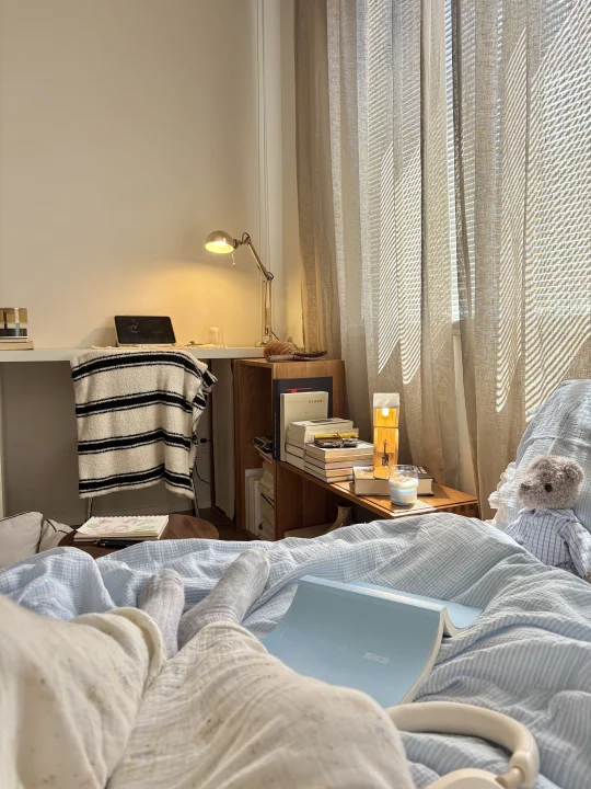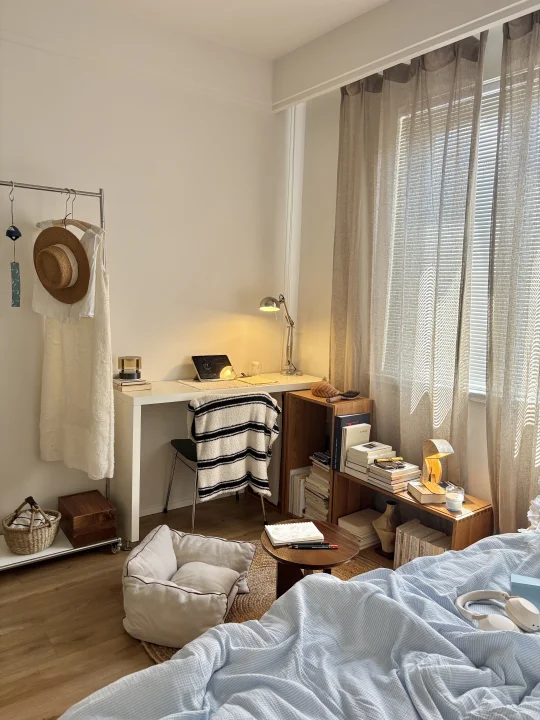 淡淡的房间 舒服的色调 前几天旅游前着急整理行李 到了目的地🎐 又被炙烤得逛不动(🥹实在太热了!) 溜达一圈还是家里舒服 开着空调 画着小画🎨 小小的卧室是我的栖息地 是淡人的乌托邦~