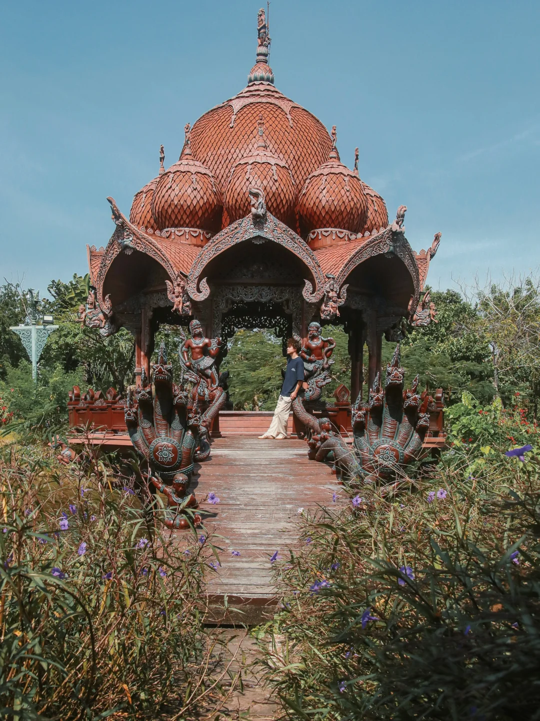 没想到距离曼谷市区仅30km的地方 不用人挤人还能可以花一天时间玩遍整个泰国! 曼谷、素可泰、清迈、大城、孔敬等地 不同时期的名胜古迹120多个景点 竟然全被搬到了「暹罗古城」 古城一日,便能看完千年暹罗 . 🛶景点:暹罗古城 Ancient City 📍地址:泰国北榄府 296/1 Sukhumvit Road, Bang Pu Mai Subdistrict, Mueang Samut Prakan 10280 🚗交通:曼谷乘坐BTS 到 Kheha 站 3 号出口,转乘 36 号双条车(10฿)或搭乘出租车前往 🕑开放时间:09:00 – 19:00 🎫门票:现场成人700฿,建议提前网上购买会更便宜 . 📷打卡攻略 兜率宫:曼谷标志大皇宫的经典建筑,人少好出片! - 圣佩奇宝殿:全泰唯一1:1还原重现了圣佩奇宝殿的宏伟壮观,也还原了泰国十大奇观之一的树抱佛奇观 - 七顶塔寺:七座不同风格的佛塔,充满北泰风情 - 兰纳泰式村庄:再现了几乎绝迹的泰北传统古村庄,感受原汁原味的兰纳文化 - 大鱼神:一座被巨型鲶鱼环绕的水上小岛,奇特且壮观 - 罗汉殿:一座融合了泰、缅、中的建筑艺术风格结合的佛殿,金碧辉煌 · ⚠️一些tips: ❶入园时领取地图,园区较大,可规划路线防止迷路 ❷景区内可做妆造、租泰服 ❸景区较大建议穿舒适的鞋,也比较建议租自行车或高尔夫车 ❹附近还有三头神象博物馆,可以一起游玩 ·